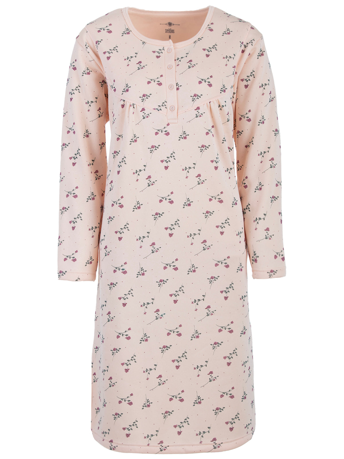Das Nachthemd ist von innen angeraut wodurch es sehr weich und kuschelig ist, also ideal für die kühlere Jahreszeit. Die vier Knöpfe am Rundhalsauschnitt sorgen für einen komfortables An- und Ausziehen.