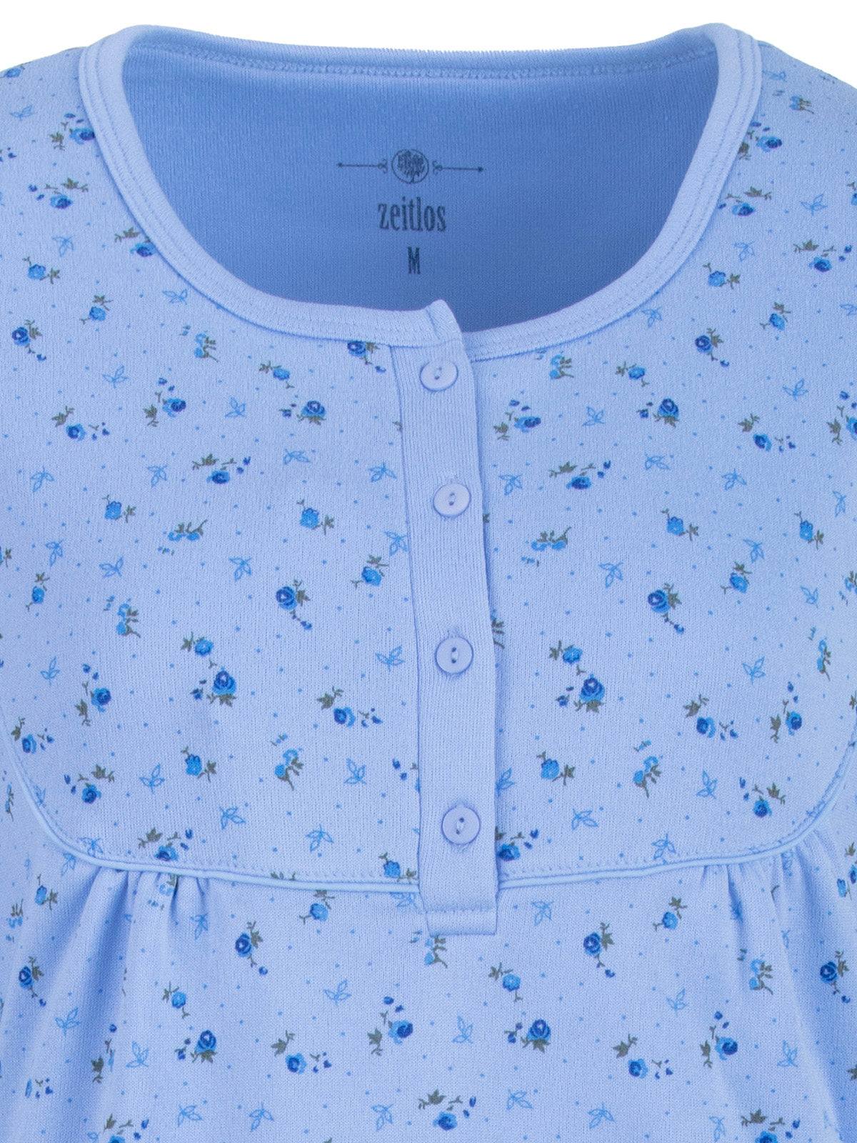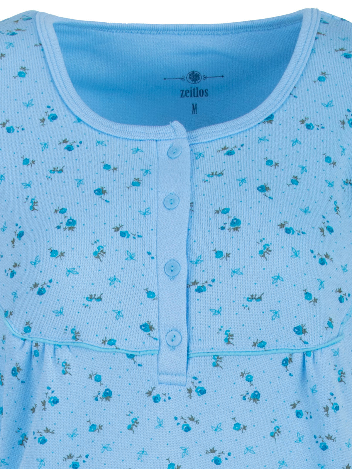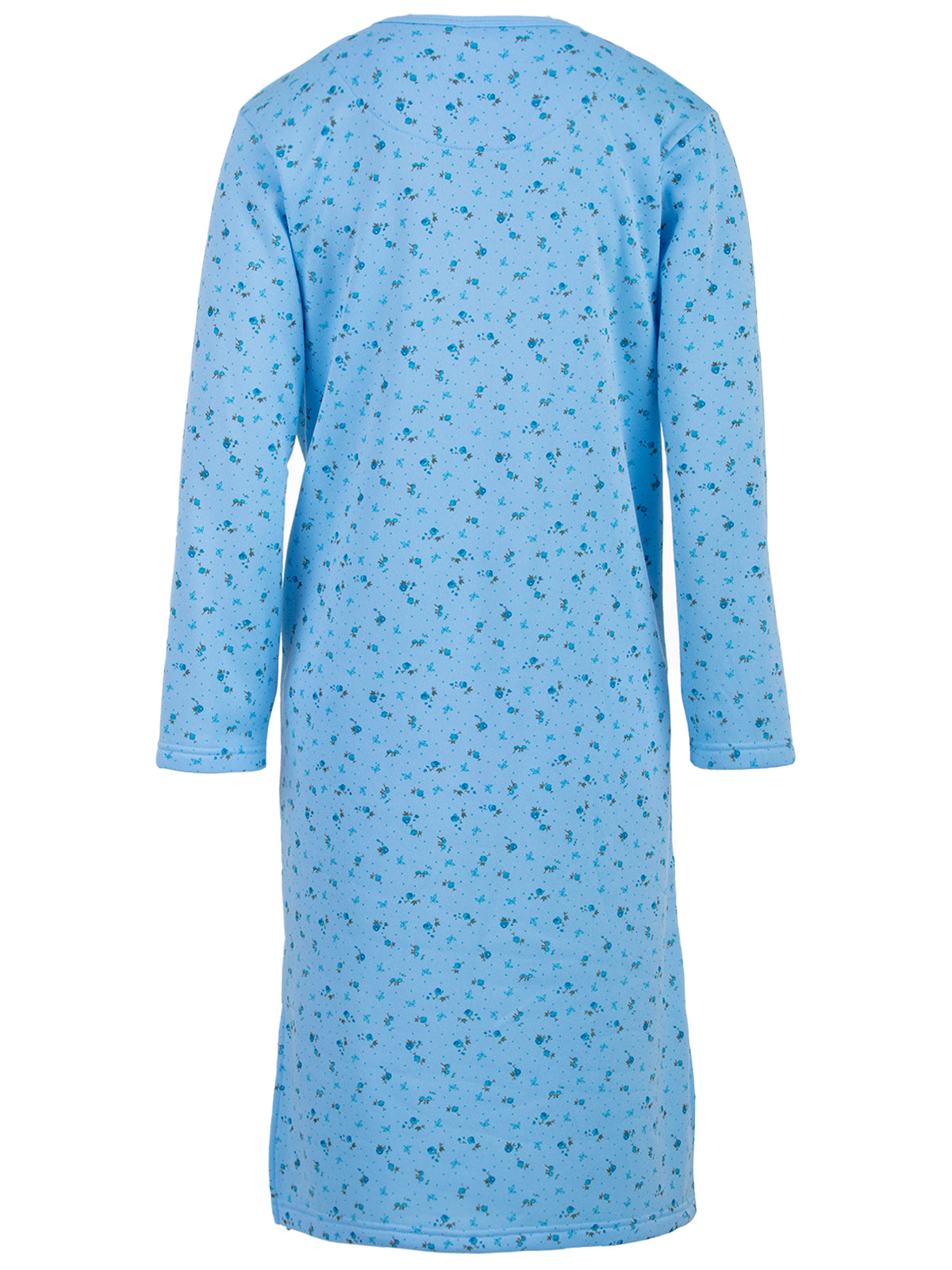 Das Nachthemd ist von innen angeraut wodurch es sehr weich und kuschelig ist, also ideal für die kühlere Jahreszeit. Die vier Knöpfe am Rundhalsauschnitt sorgen für einen komfortables an- und ausziehen.