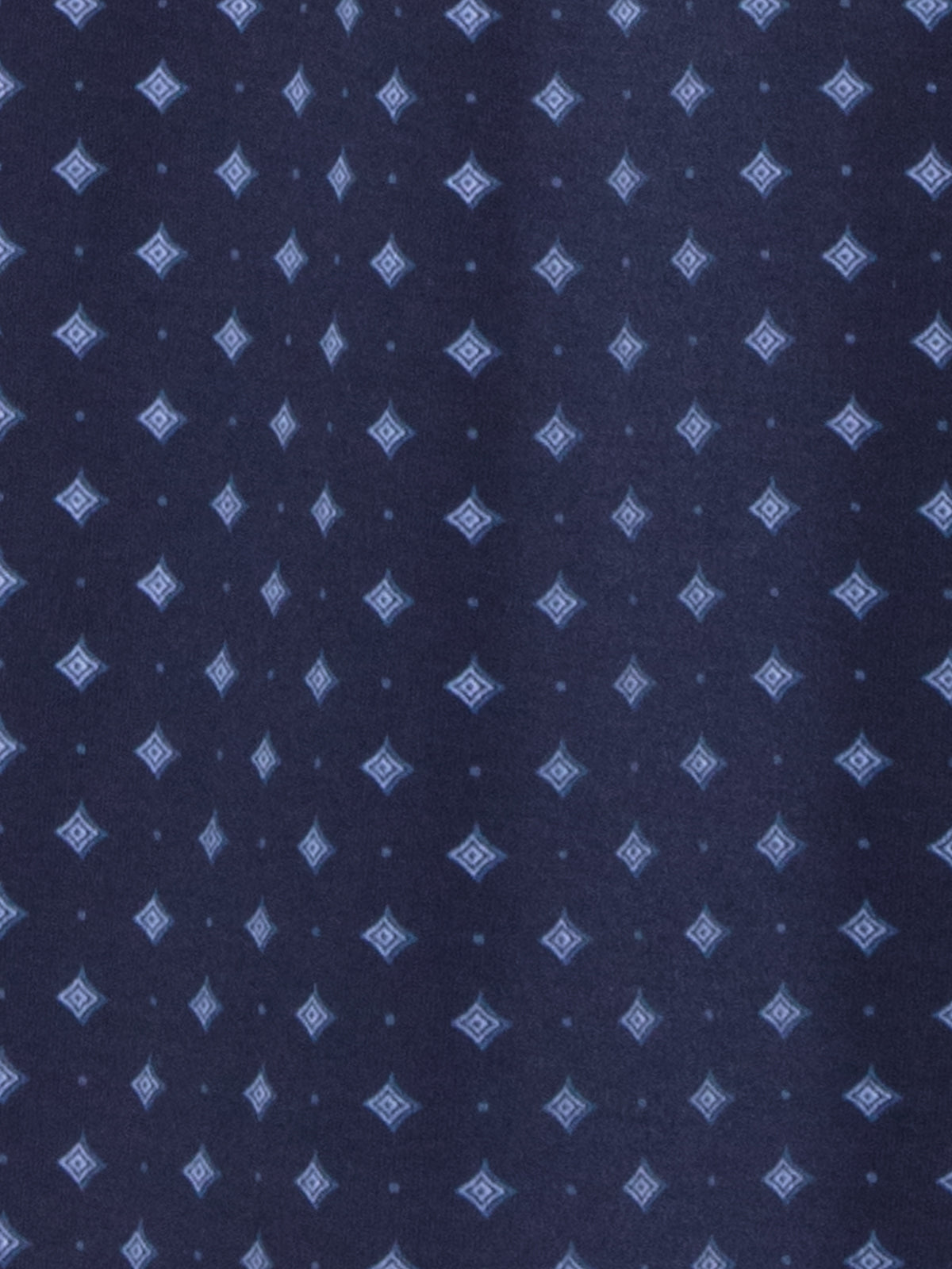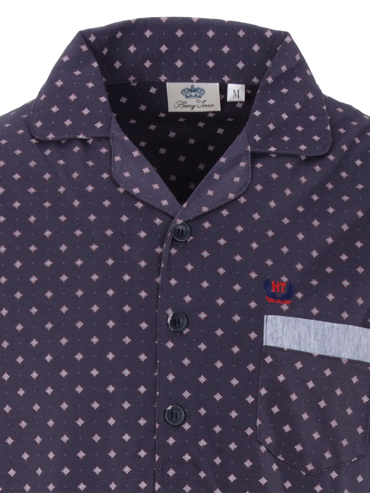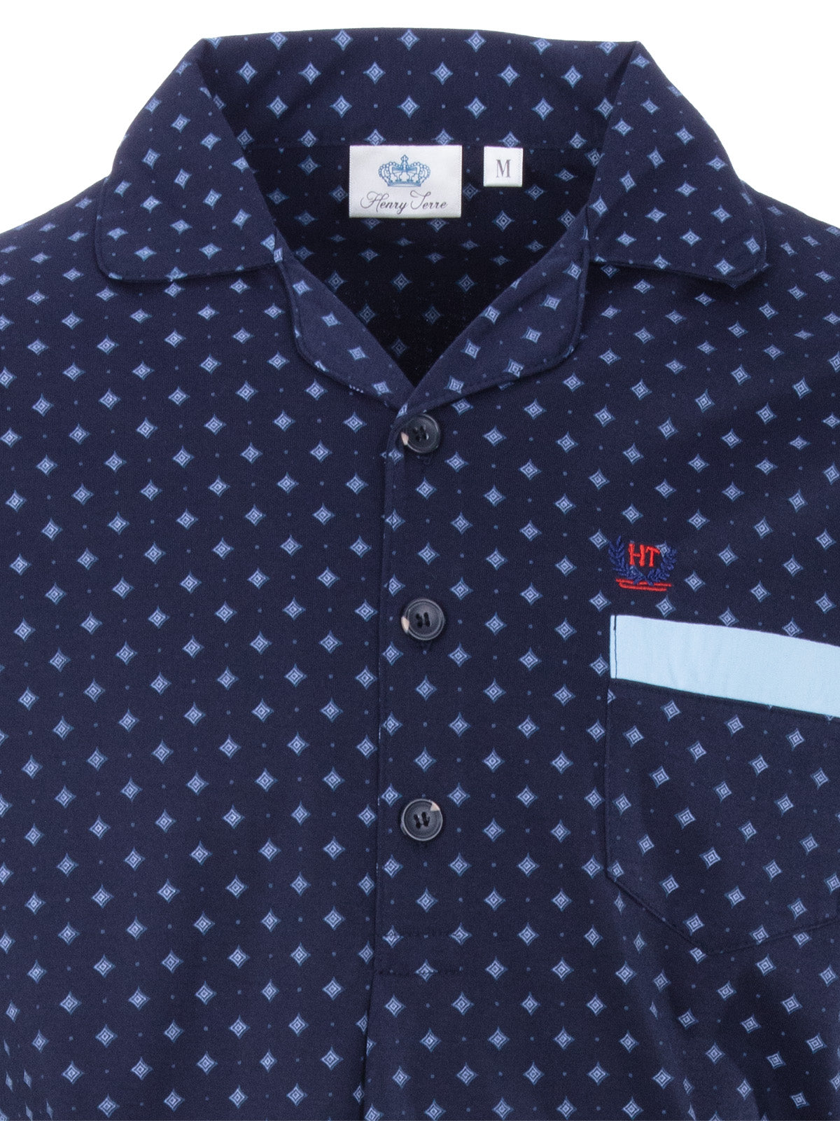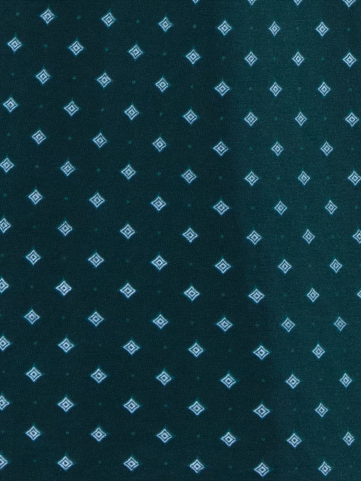 Das Schlafshirt ist in den Farben grün, navy und anthrazit erhältlich. Ein Muster aus dezenten Rauten und Punkten lockert das Design optisch auf.