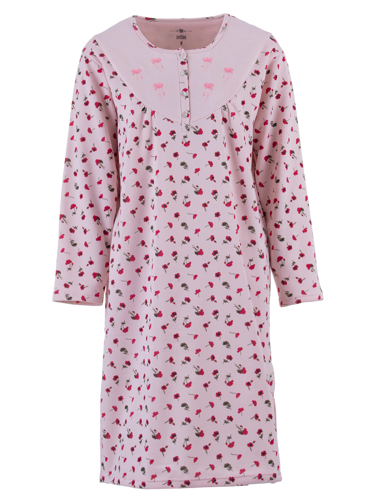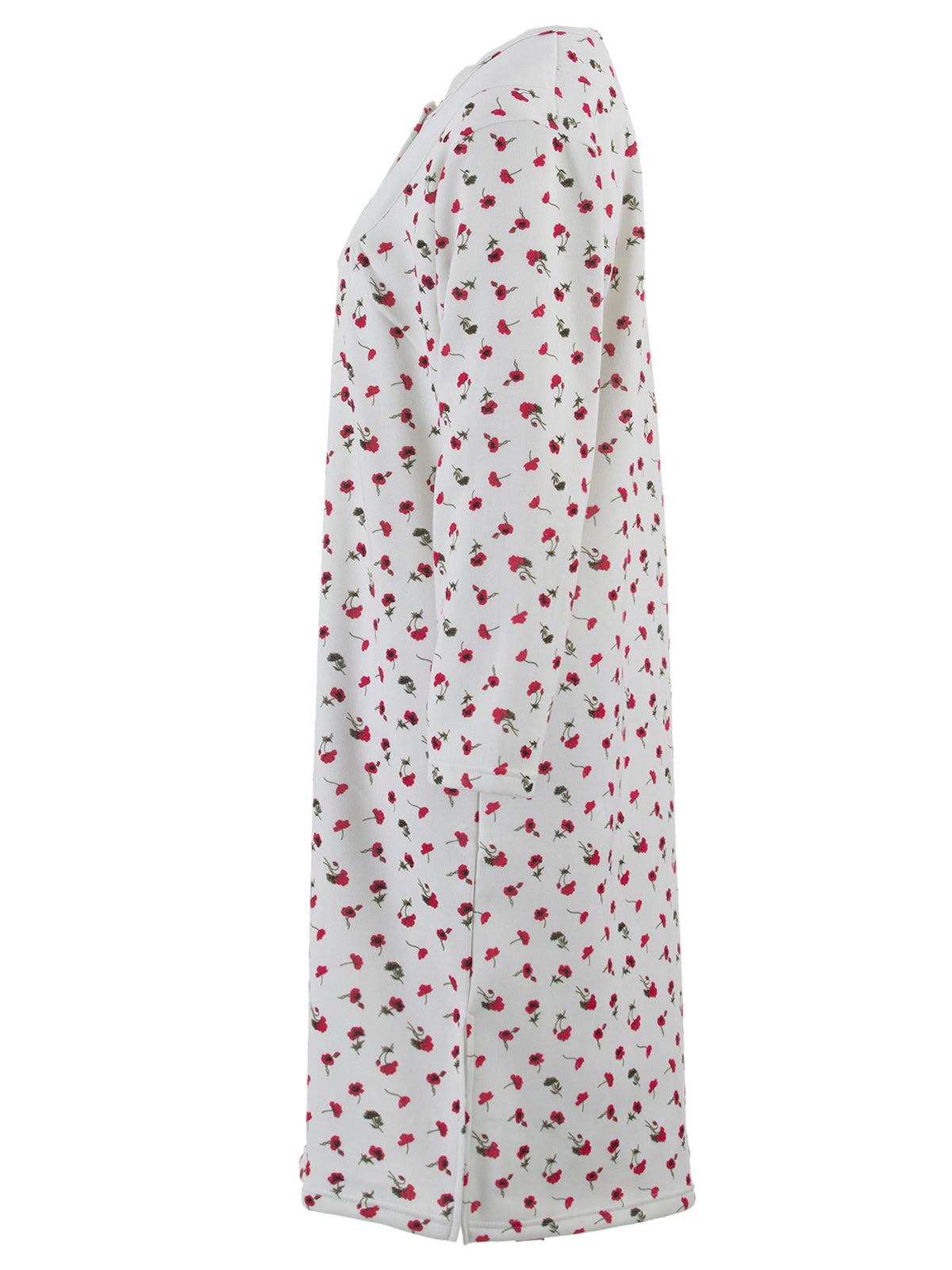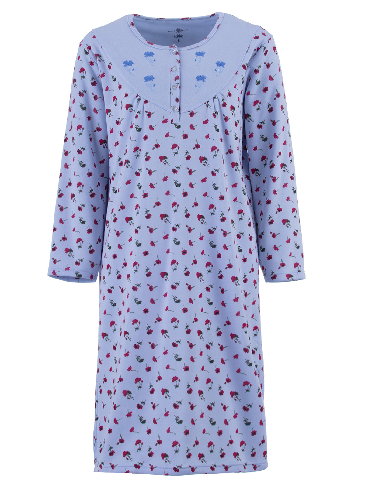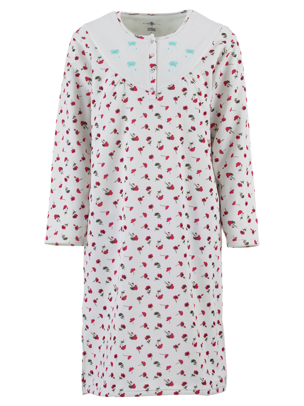 Das Nachthemd ist von innen angeraut wodurch es sehr weich und kuschelig ist, also ideal für die kühlere Jahreszeit. Die vier Knöpfe am Rundhalsauschnitt sorgen für einen komfortables an- und ausziehen.