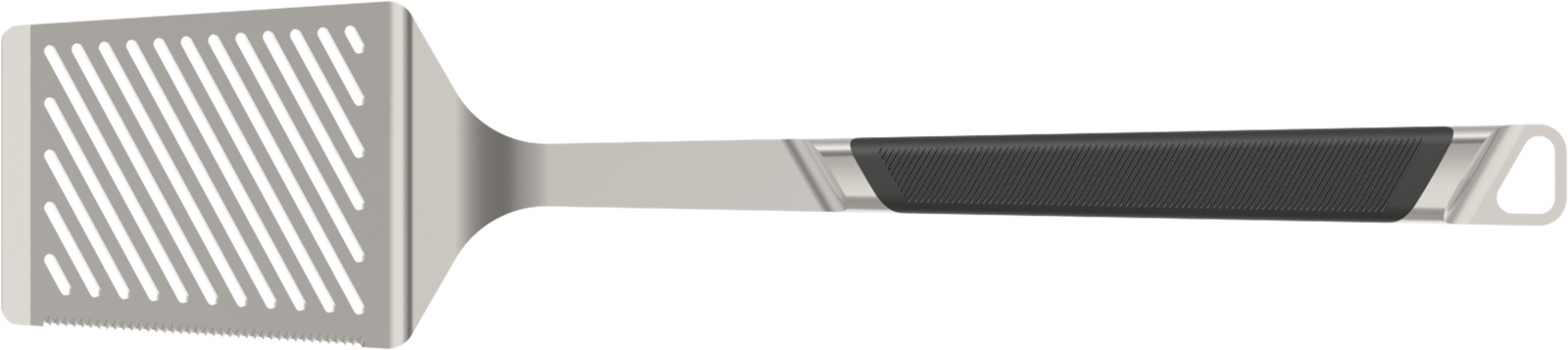 Der Everdure Premiumwender (L) mit Softgriff besteht aus gebürstetem Edelstahl und eignet sich optimal um größeres Grillgut zu wenden. Mit druchdachten Griffen besitzt der Wender ein optimales Handling. Mit einem integrierten Aufhänger, kann der Wender problemlos an Ihren Grill gehängt werden, wenn er gerade mal nicht in Benutzung ist.