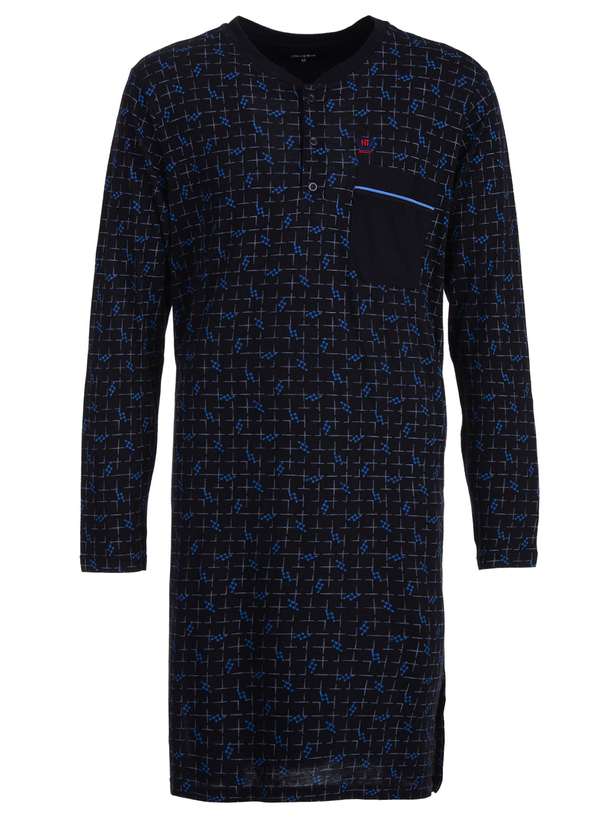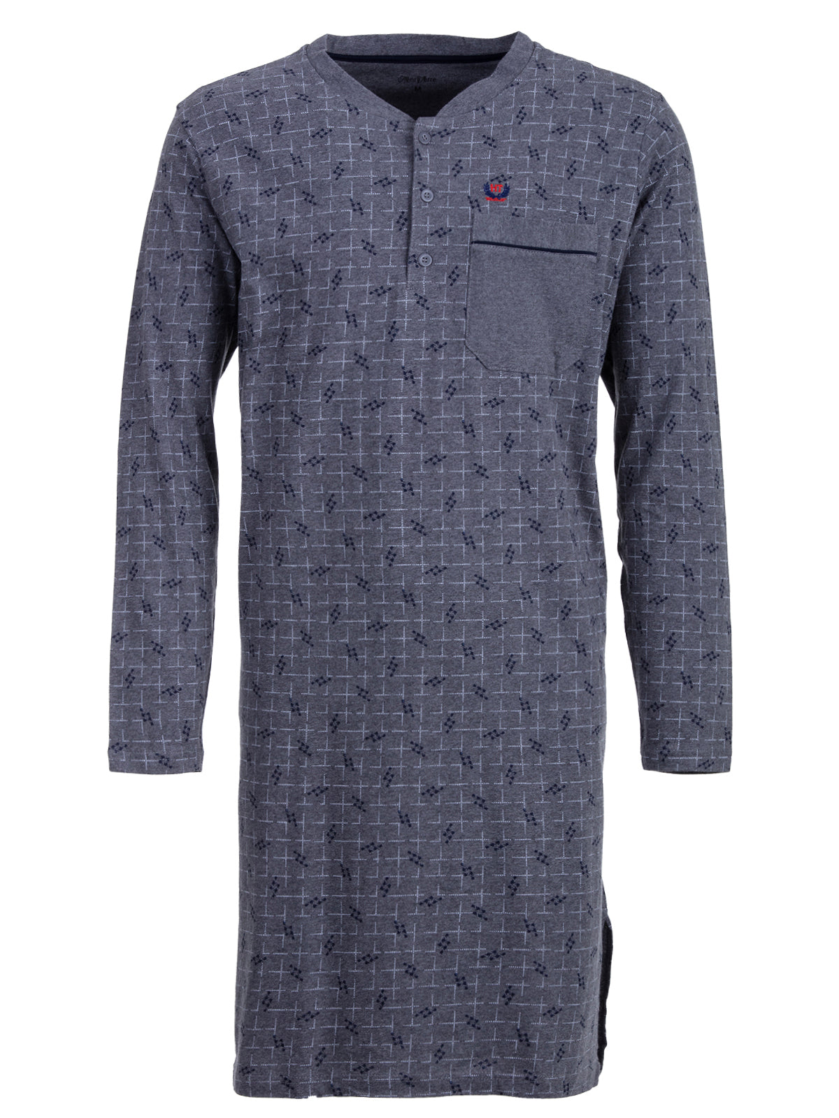 Dieses langärmelige Herren-Nachthemd ist die perfekte Kombination aus hohem Tragekomfort und einem modischen Argyle Style. Dekorative Knopfleiste und Brusttasche. Wunderbar weich und gleichzeitig formbeständig. Die seitlichen Schlitze machen das Nachthemd besonders bequem. Ideal für Herren, die entspannte Nächte am liebsten in bewährter Henry Terre Qualität genießen.