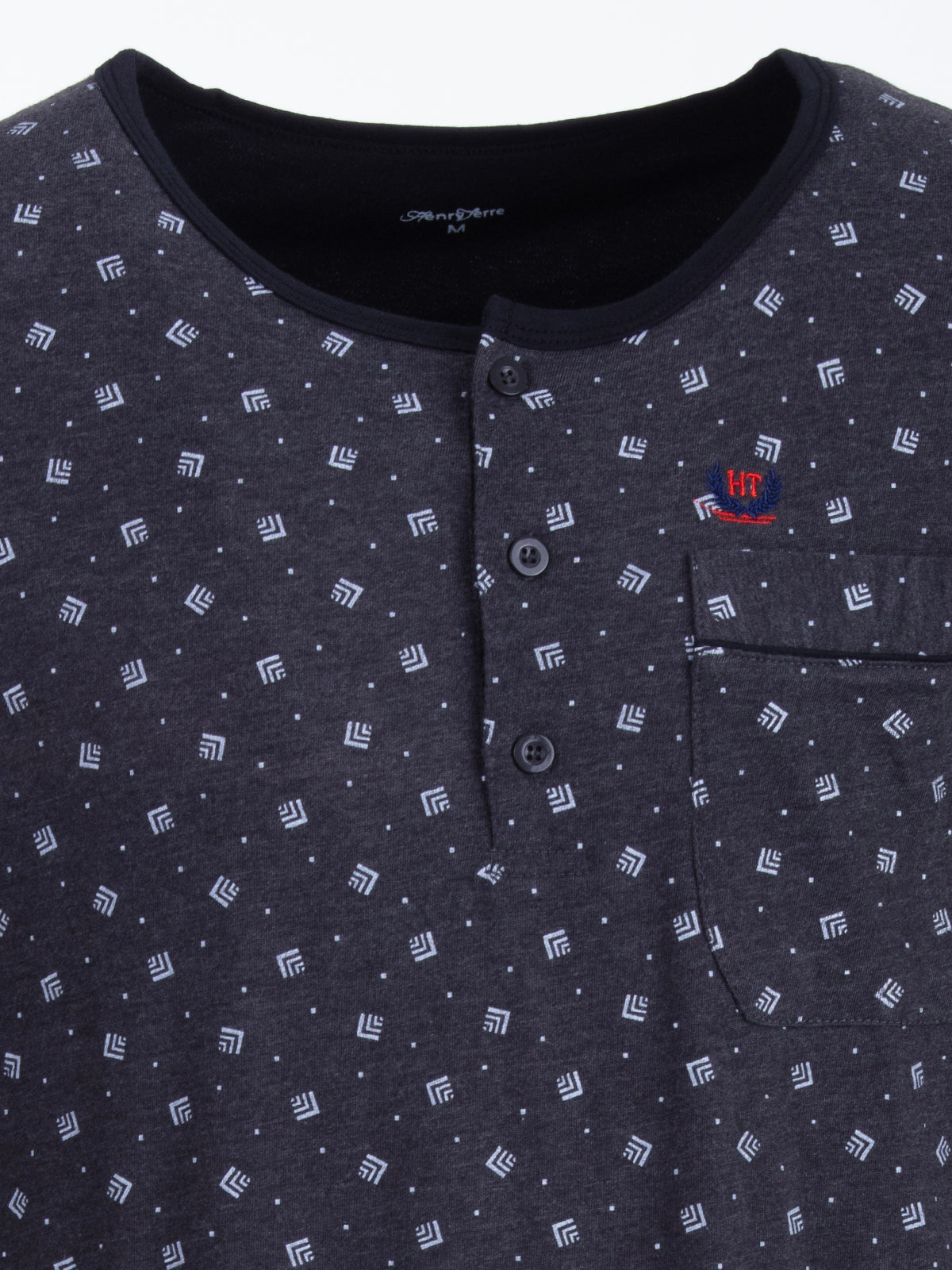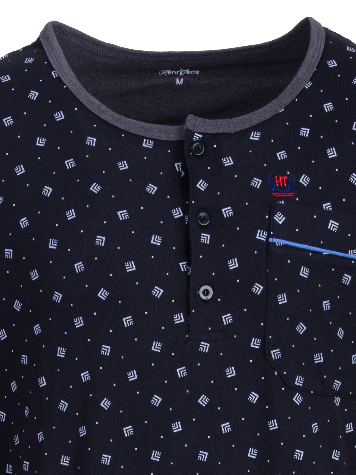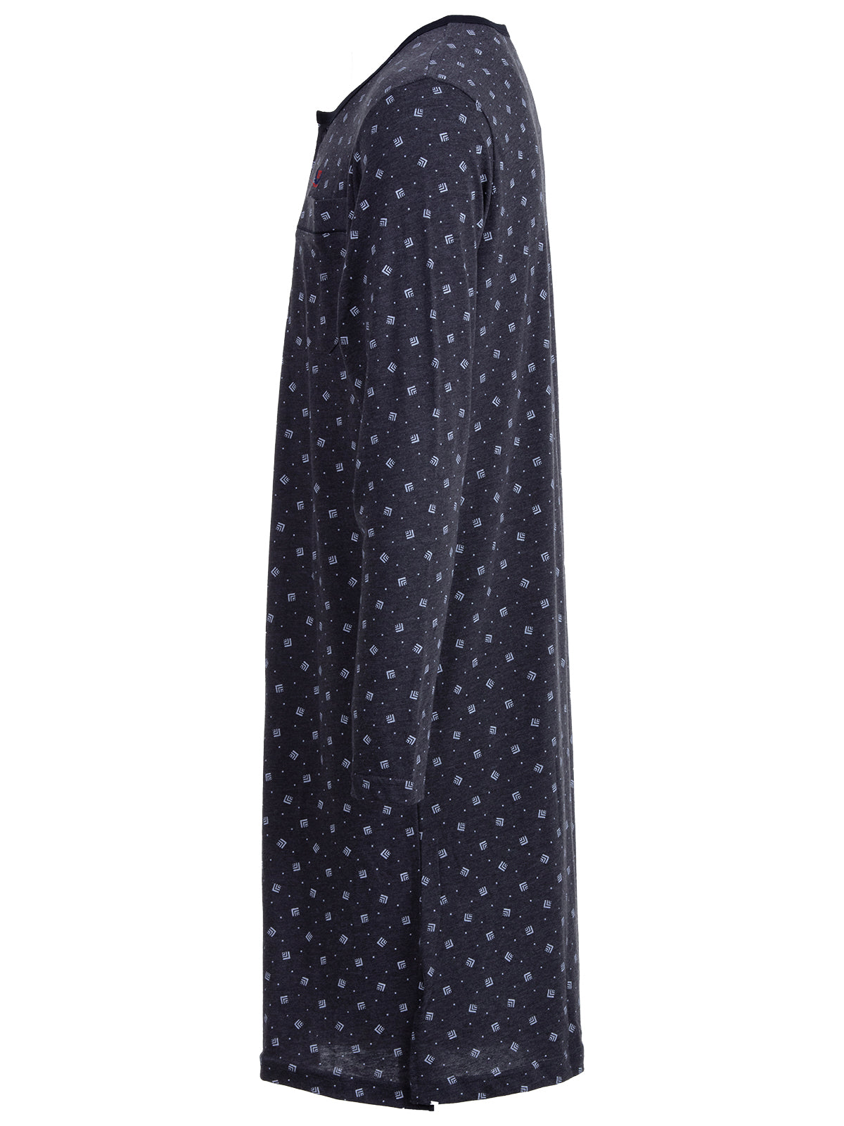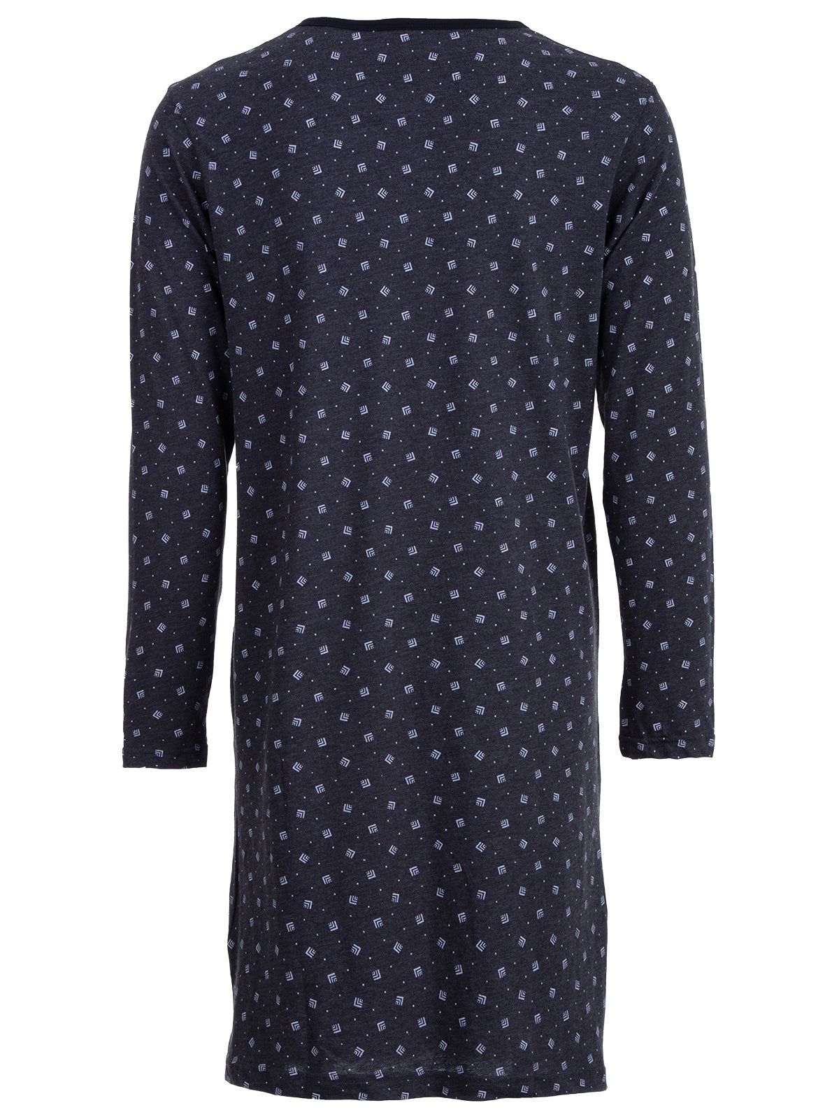 Dieses langärmelige Herren-Nachthemd ist die perfekte Kombination aus hohem Tragekomfort und einem klassischen Design- ein Mix aus Sqares mit Punkten. Dekorative Knopfleiste und Brusttasche. Wunderbar weich und gleichzeitig formbeständig. Die seitlichen Schlitze machen das Nachthemd besonders bequem. Ideal für Herren, die entspannte Nächte am liebsten in bewährter Henry Terre Qualität genießen.