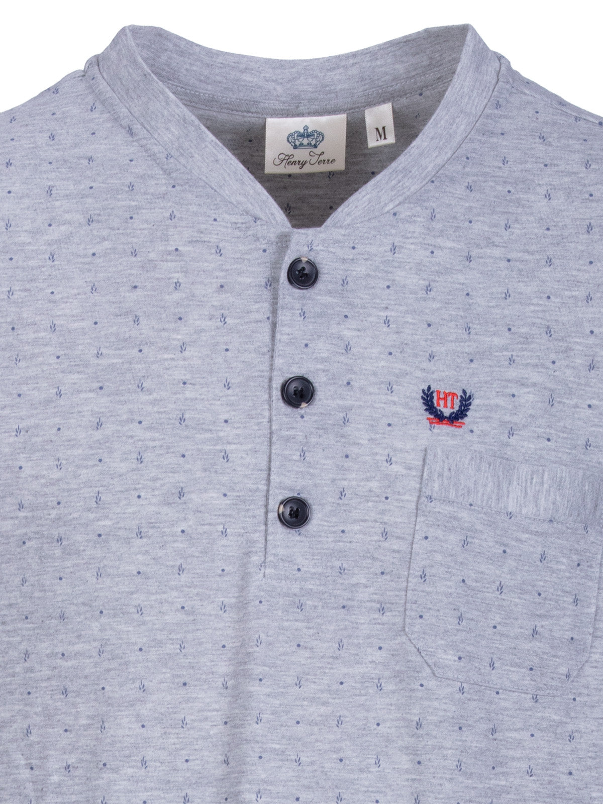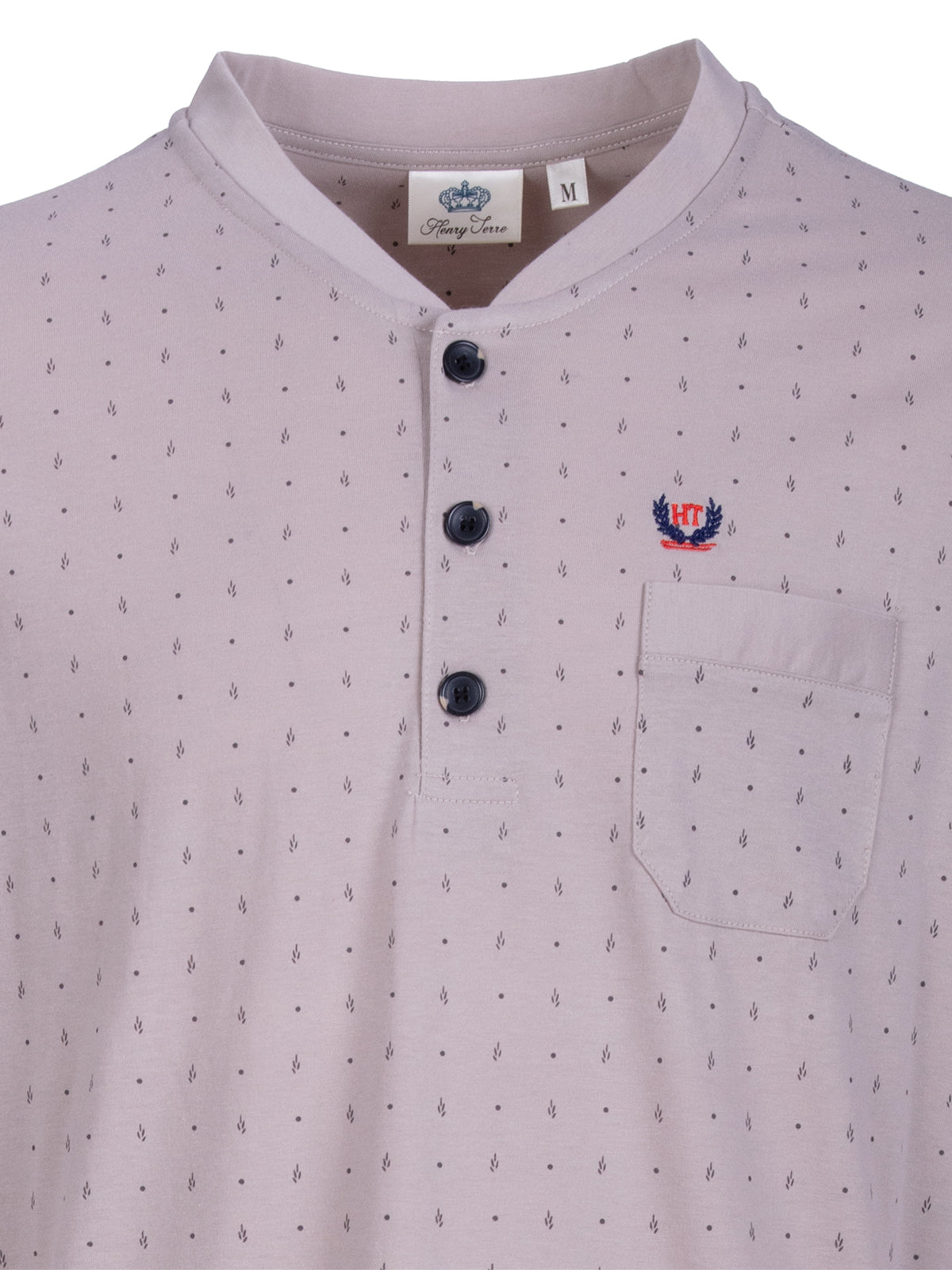 Drei Knöpfe in edler Hornoptik, sauber in eine Blende eingelassen, verleihen dem Nachthemd eine hochwertige, maskuline Ausstrahlung. Der angenehm geschnittene Halsausschnitt liegt bequem an und rundet das durchdachte Design ab.