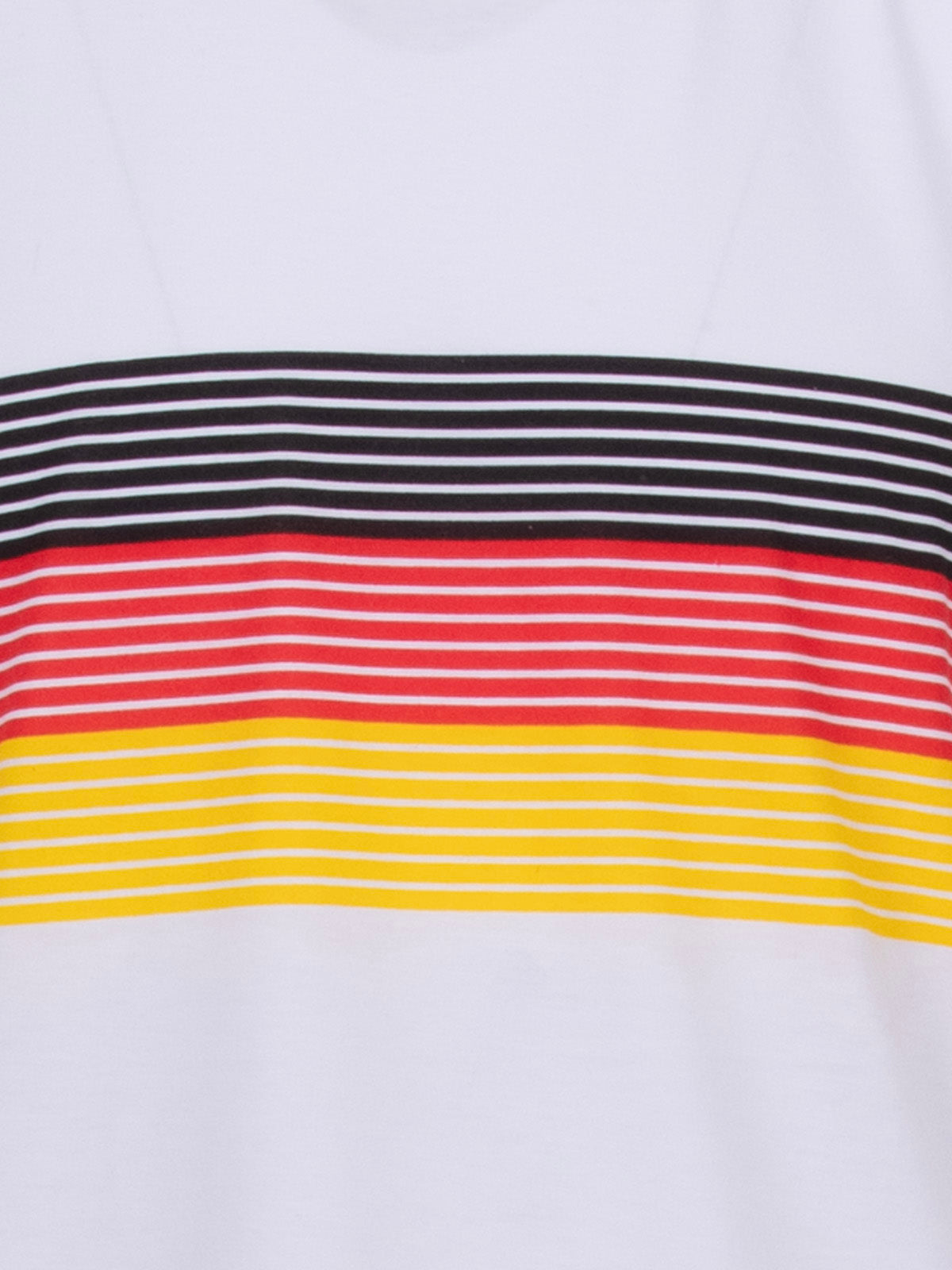 Das Oberteil in weiß mit den Farben der Deutschland Flagge und die Hose ist in schwarz gehalten. Dieses Fan-Set können sie zu allen Sport-Events tragen.