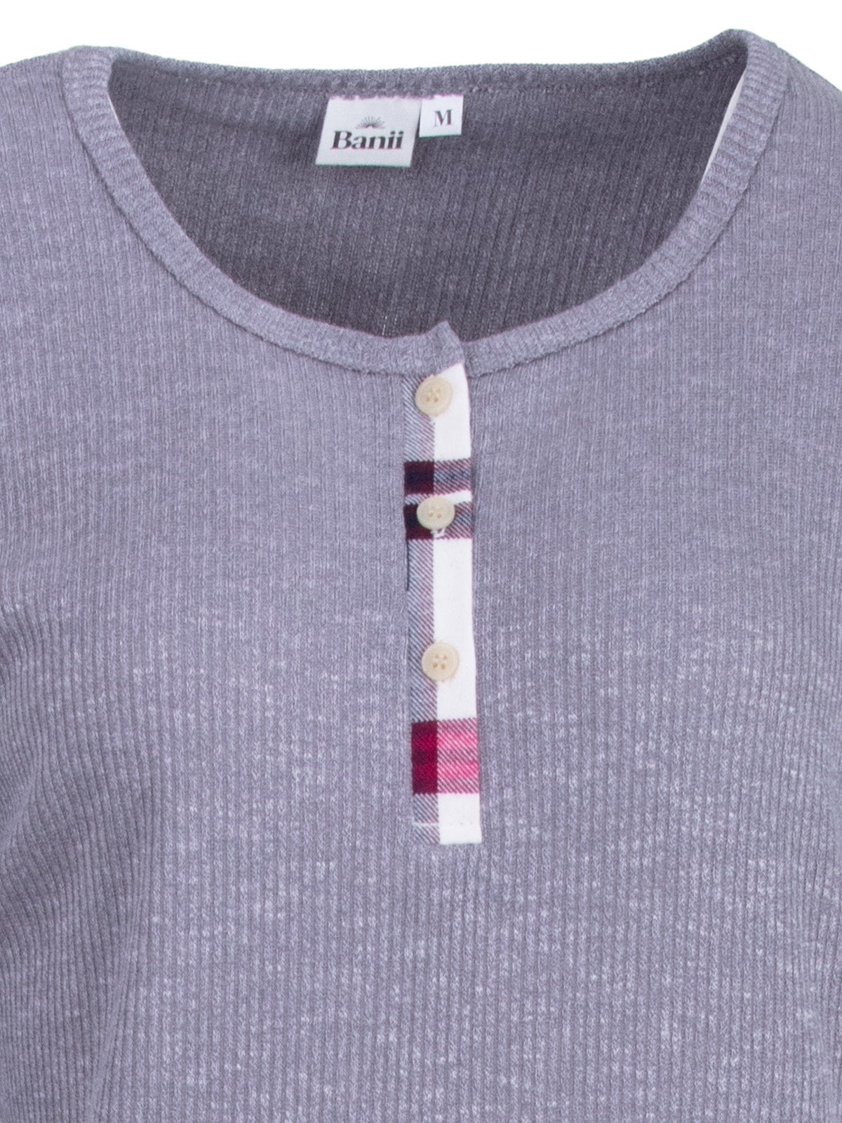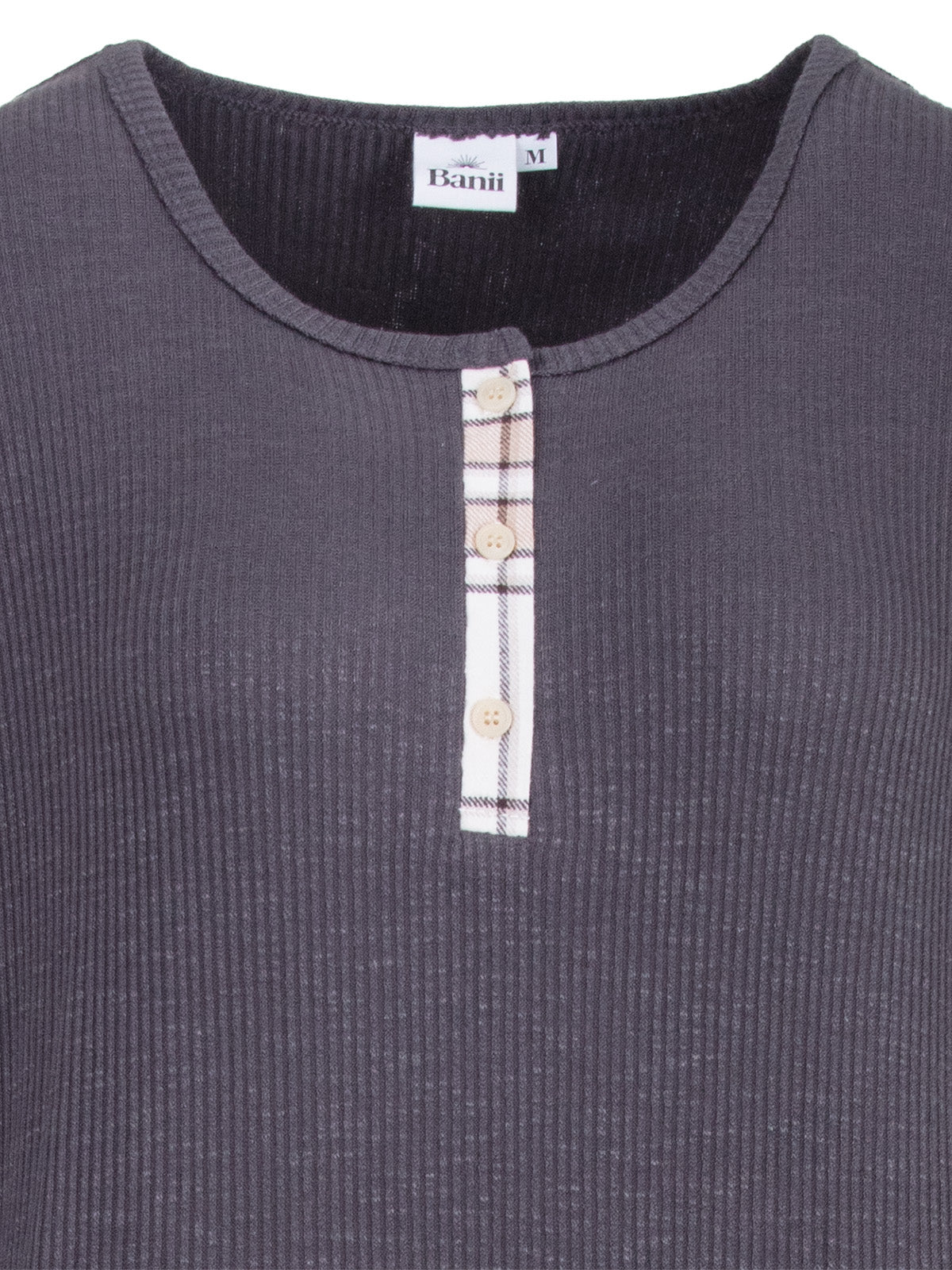 Der elastische Bund sorgt für zusätzlichen Tragekomfort, ohne einzuengen – ideal zum Relaxen, Lesen oder einfach zum Seele-baumeln-Lassen. Ein besonderes Detail ist die 3er-Knopfleiste mit Knöpfen in beiger Hornoptik, die dem Design einen frischen, jungen Touch verleiht und es dezent trendig abrundet.