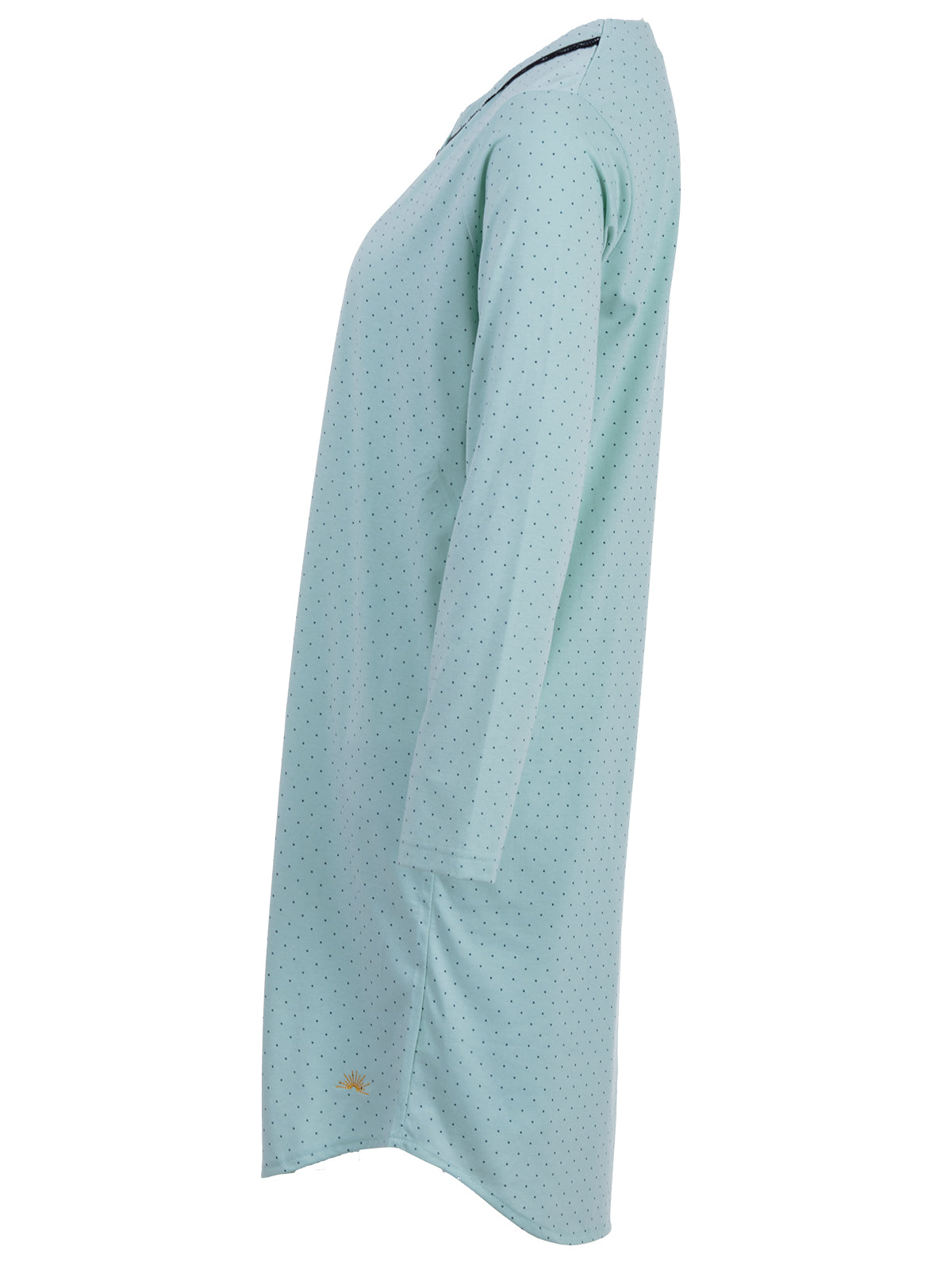 Das Highlight dieses Nachthemds ist das süße Allover-Muster aus Punkten, das dem Nachthemd eine frische und fröhliche Note verleiht. Frühlingshafte Farben machen gute Laune. Erhältlich in pink, mint und rosa.
