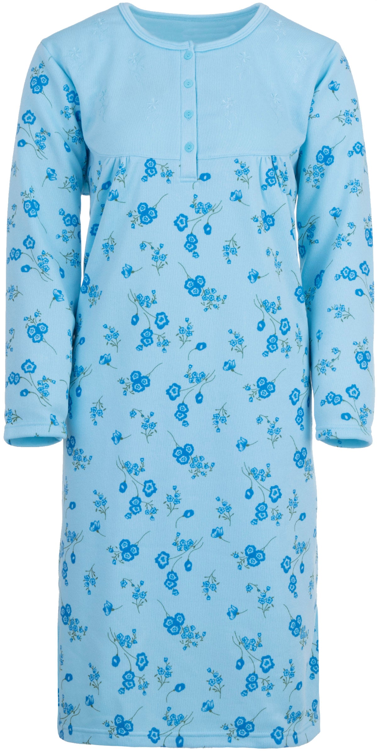Das Nachthemd mit Rundhalsausschnitt ist von innen angeraut wodurch es sehr weich und kuschelig ist, also ideal für die kühlere Jahreszeit. Die vier Knöpfe am Rundhals-Ausschnitt sorgen für einen komfortables An- und Ausziehen.