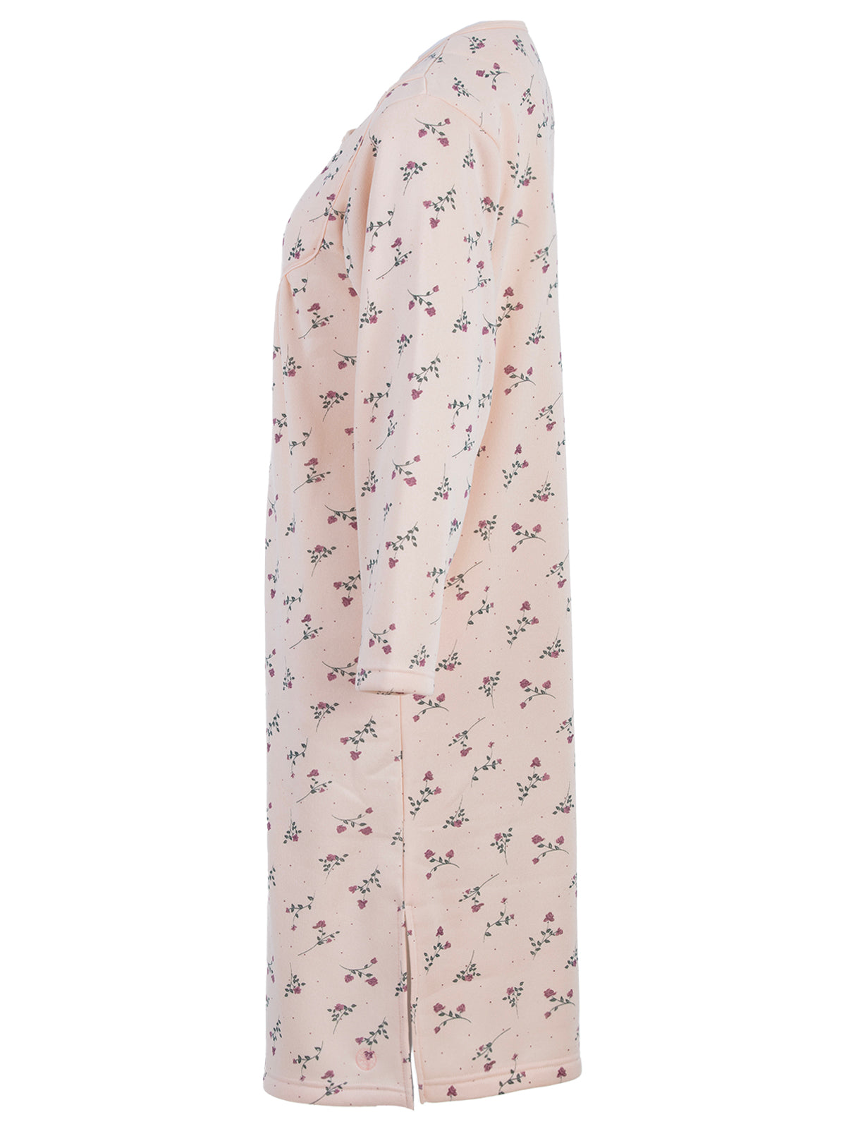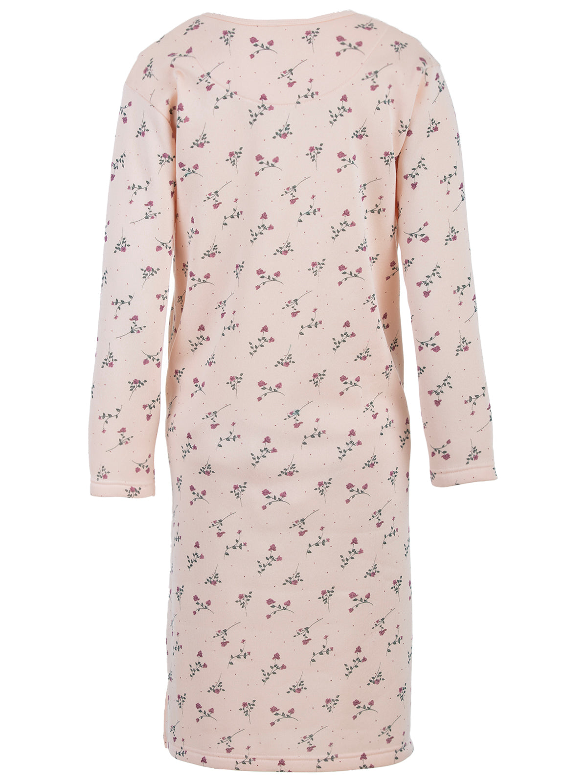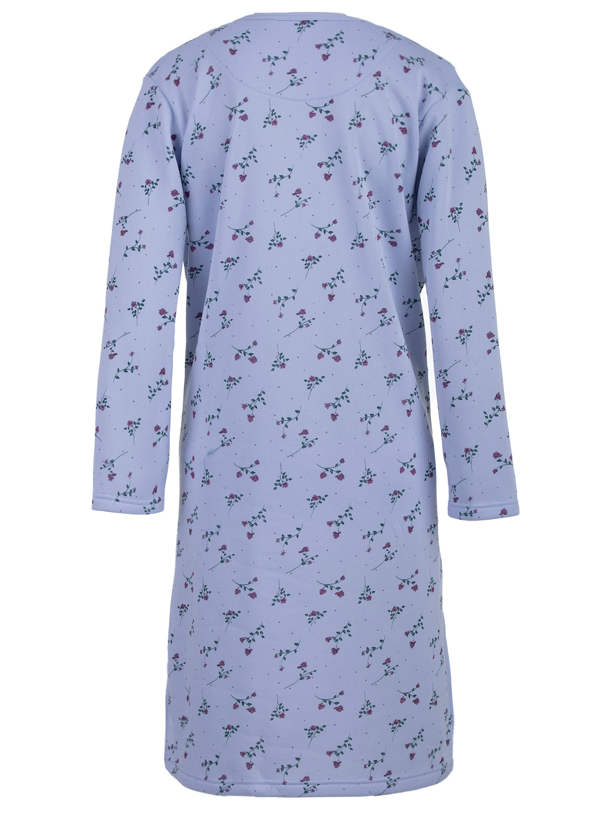 Das Nachthemd ist von innen angeraut wodurch es sehr weich und kuschelig ist, also ideal für die kühlere Jahreszeit. Die vier Knöpfe am Rundhalsauschnitt sorgen für einen komfortables An- und Ausziehen.