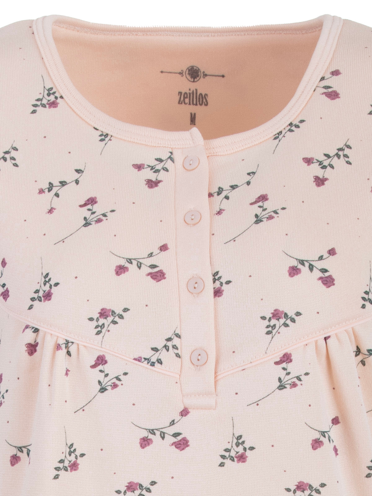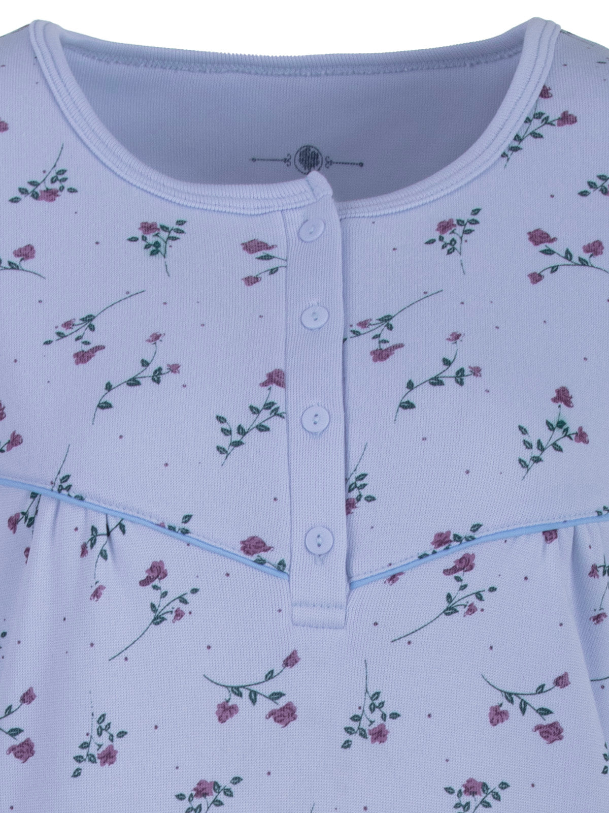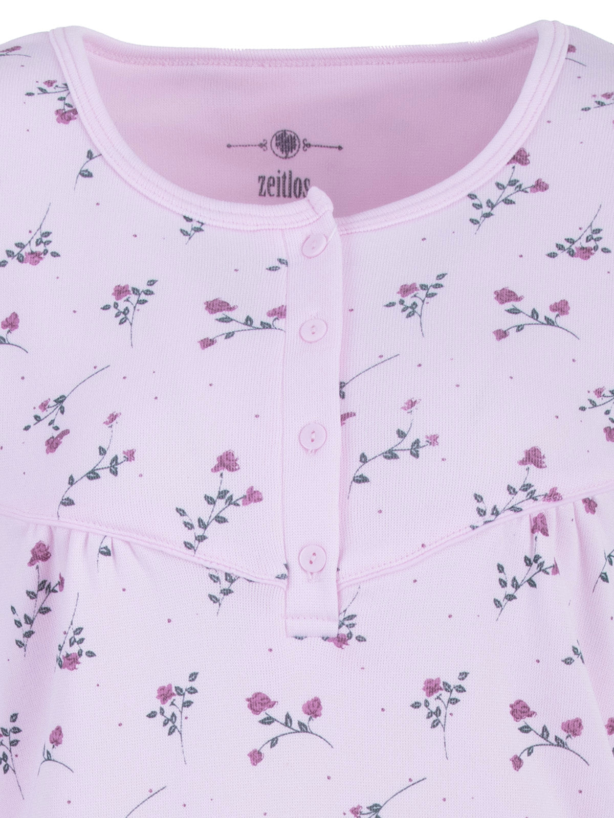 Das Nachthemd ist von innen angeraut wodurch es sehr weich und kuschelig ist, also ideal für die kühlere Jahreszeit. Die vier Knöpfe am Rundhalsauschnitt sorgen für einen komfortables An- und Ausziehen.