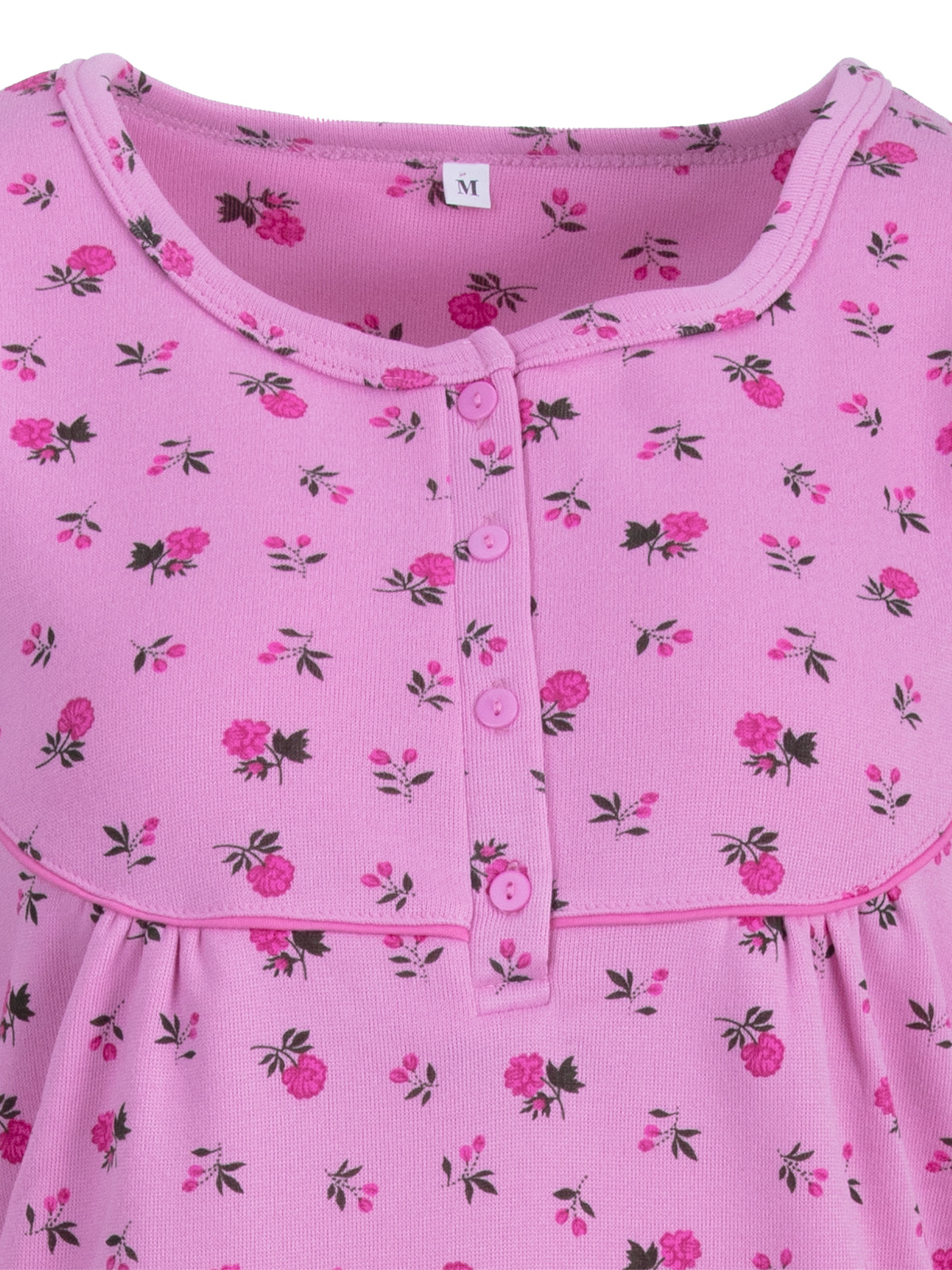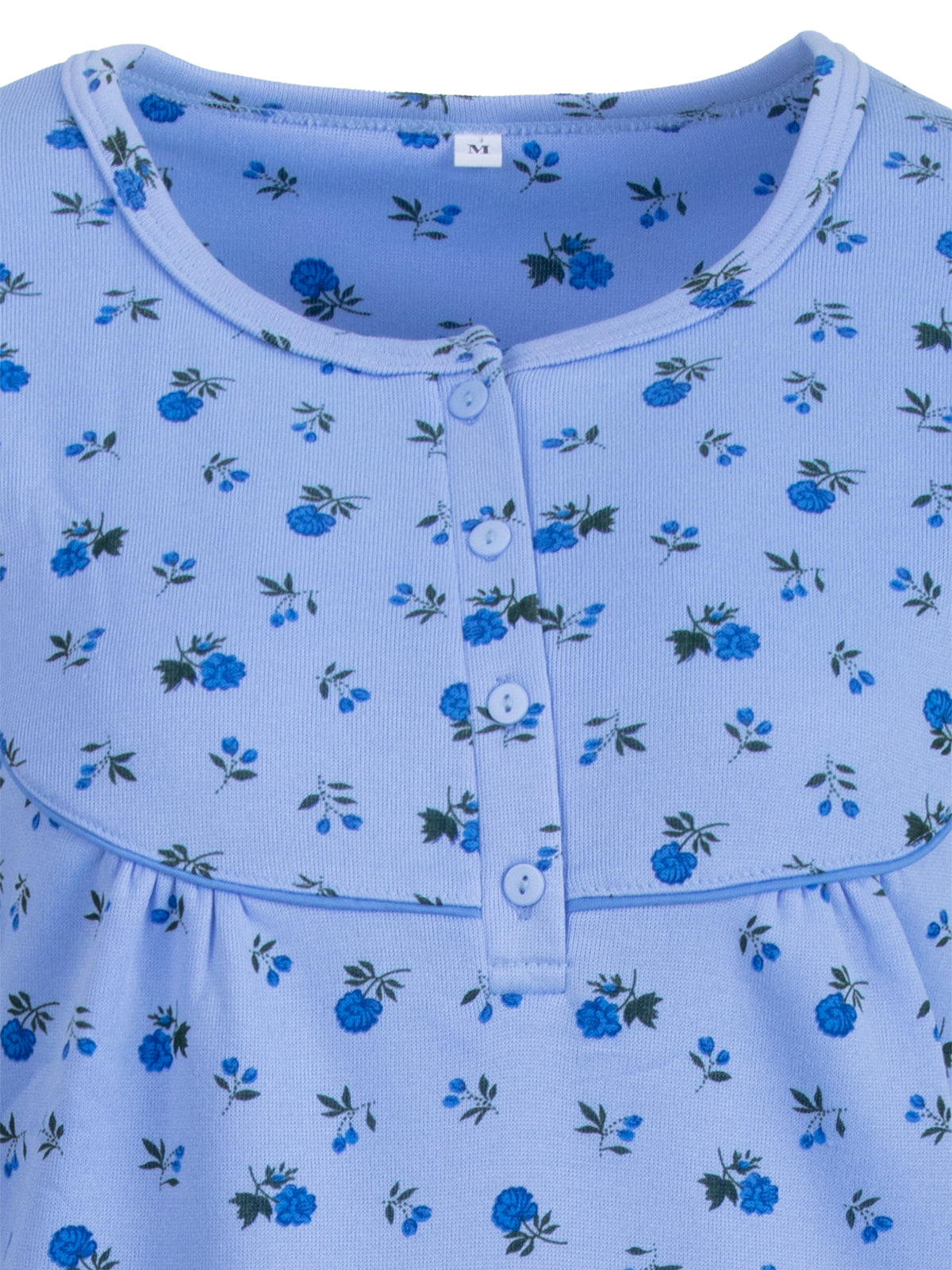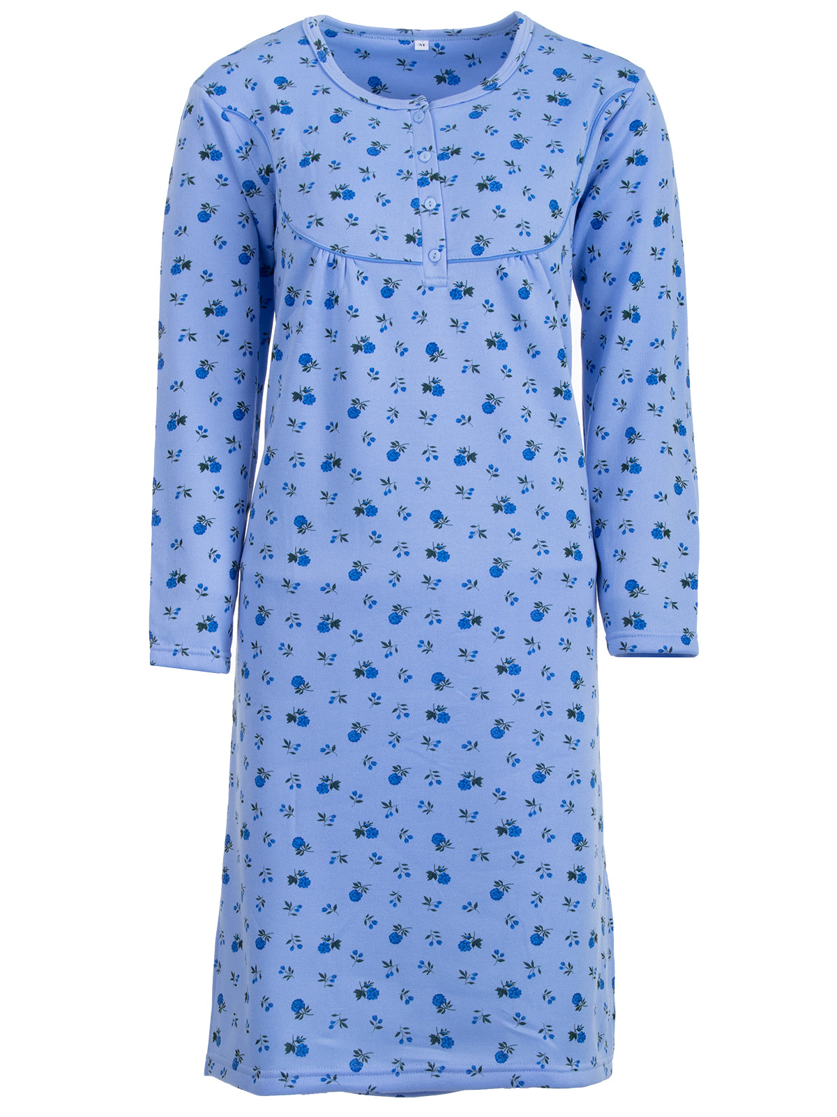 Das Nachthemd ist von innen angeraut wodurch es sehr weich und kuschelig ist, also ideal für die kühlere Jahreszeit. Die vier Knöpfe am Rundhals-Ausschnitt sorgen für einen komfortables An- und Ausziehen.