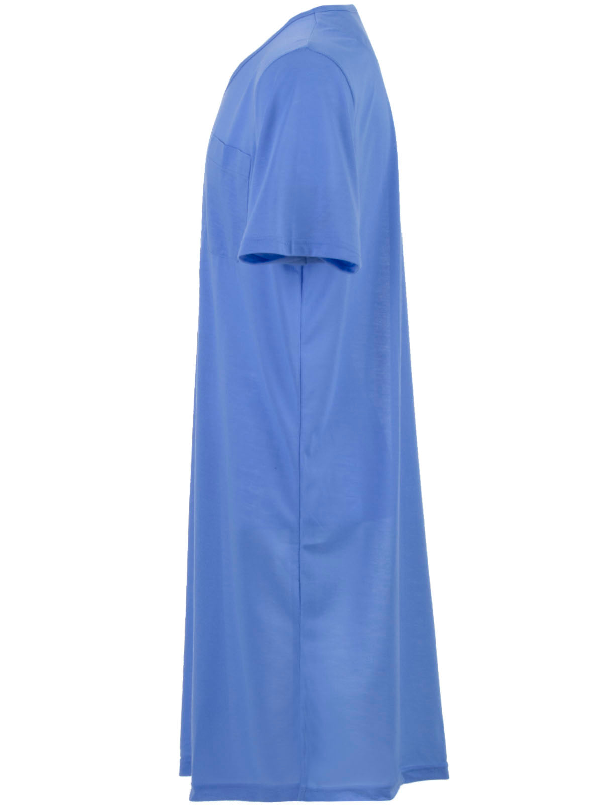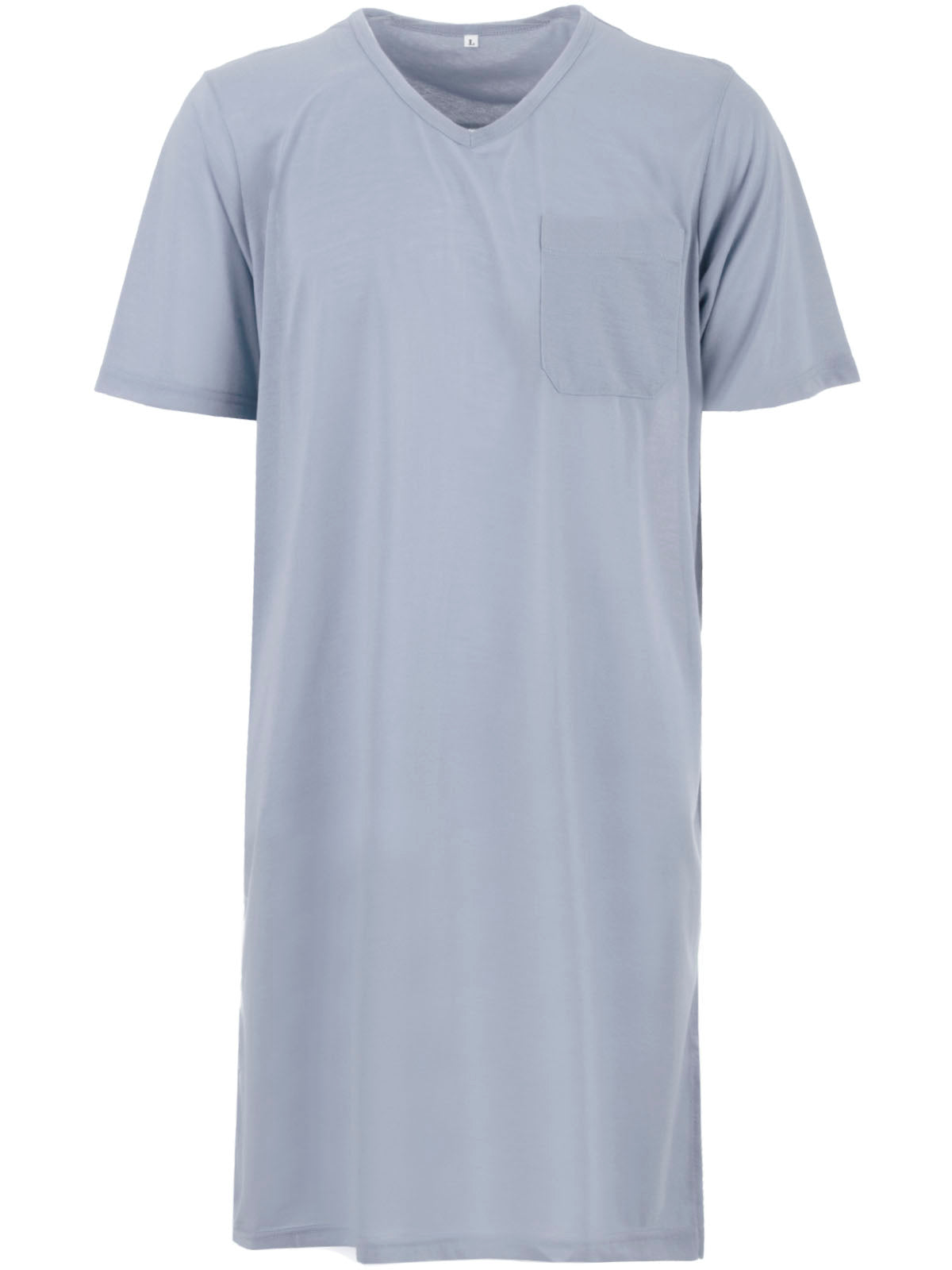 Nachthemd für Herren in klassischer Optik mit V-Ausschnitt. Das Shirt ist angenehm und leicht auf der Haut zu tragen. Unifarbene Brusttasche.