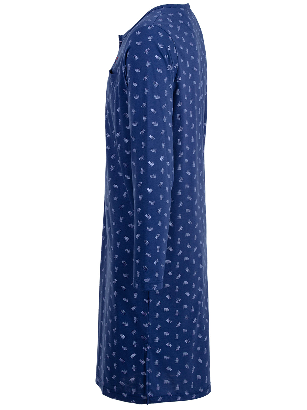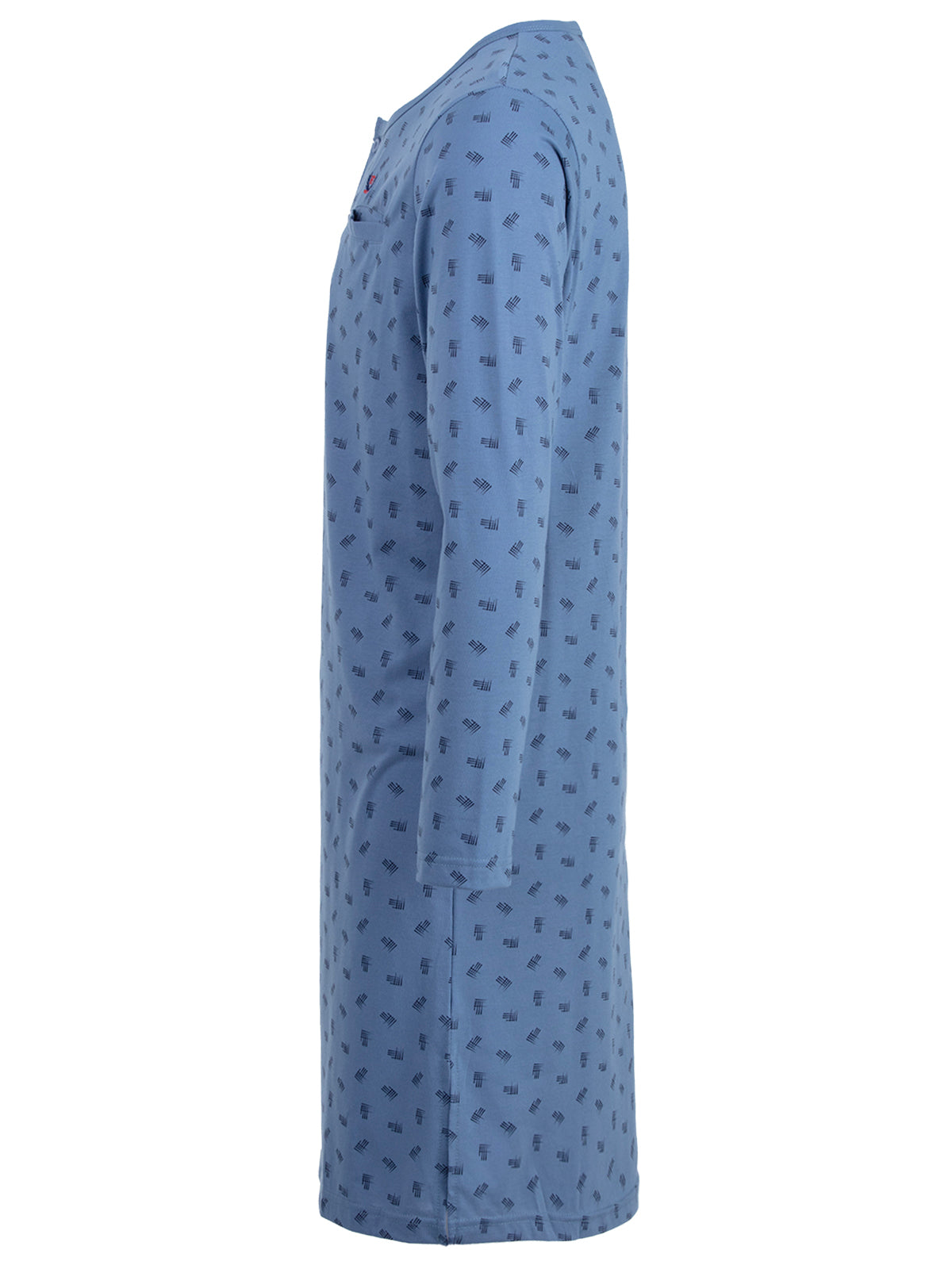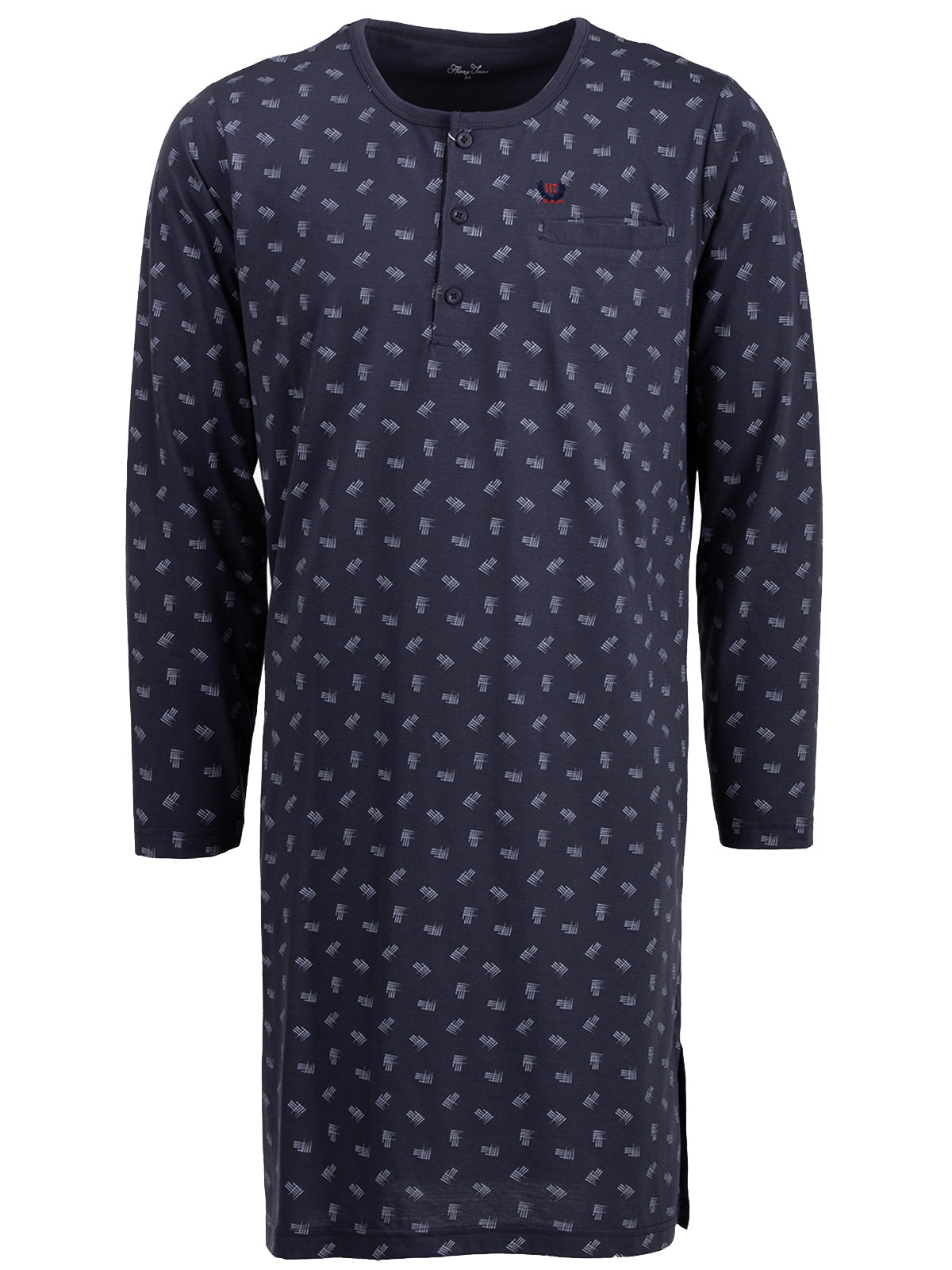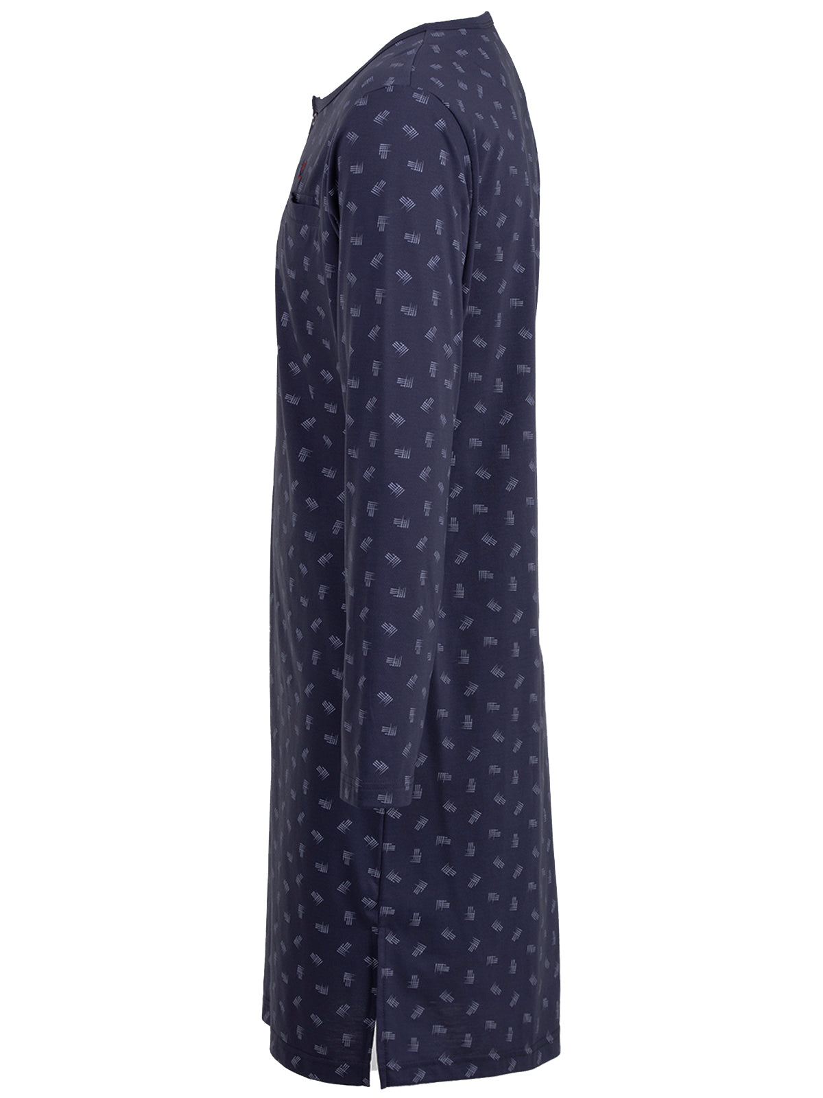 Langarm Nachthemd für Herren in moderner Optik. Das Shirt ist angenehm und leicht auf der Haut zu tragen. Dekorative Brusttasche und Knopfleiste.