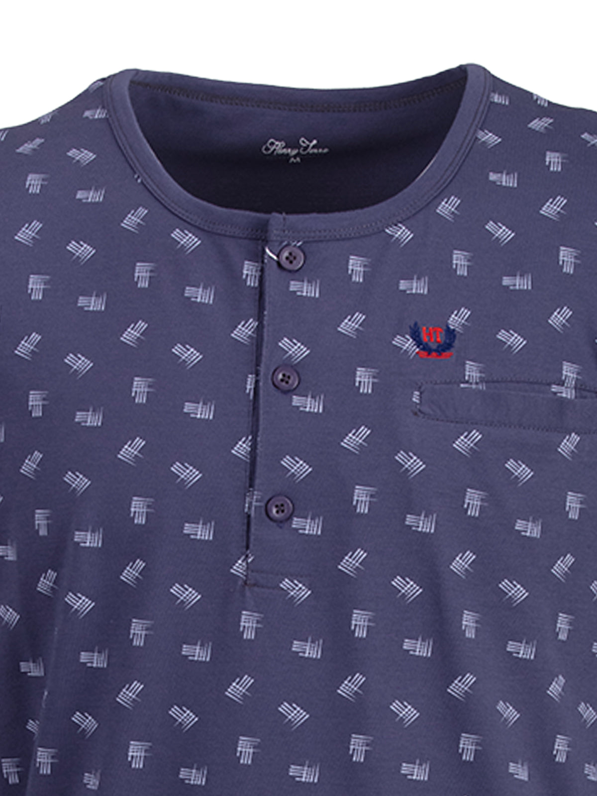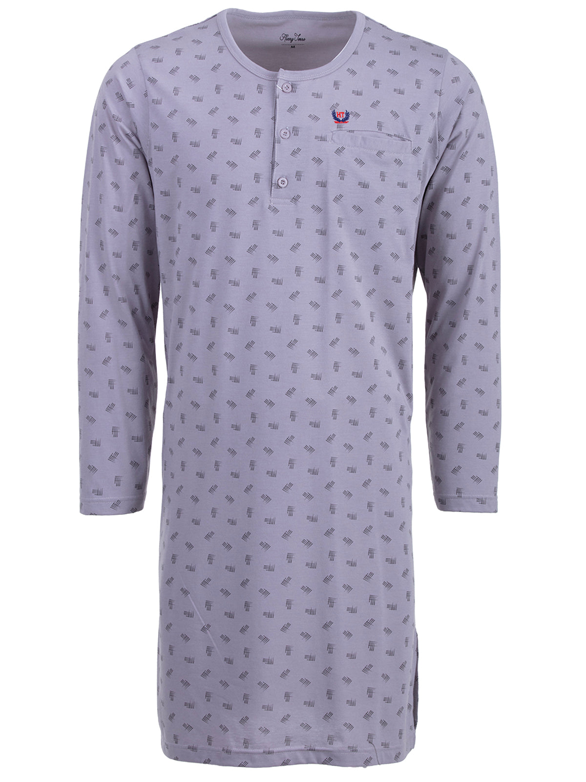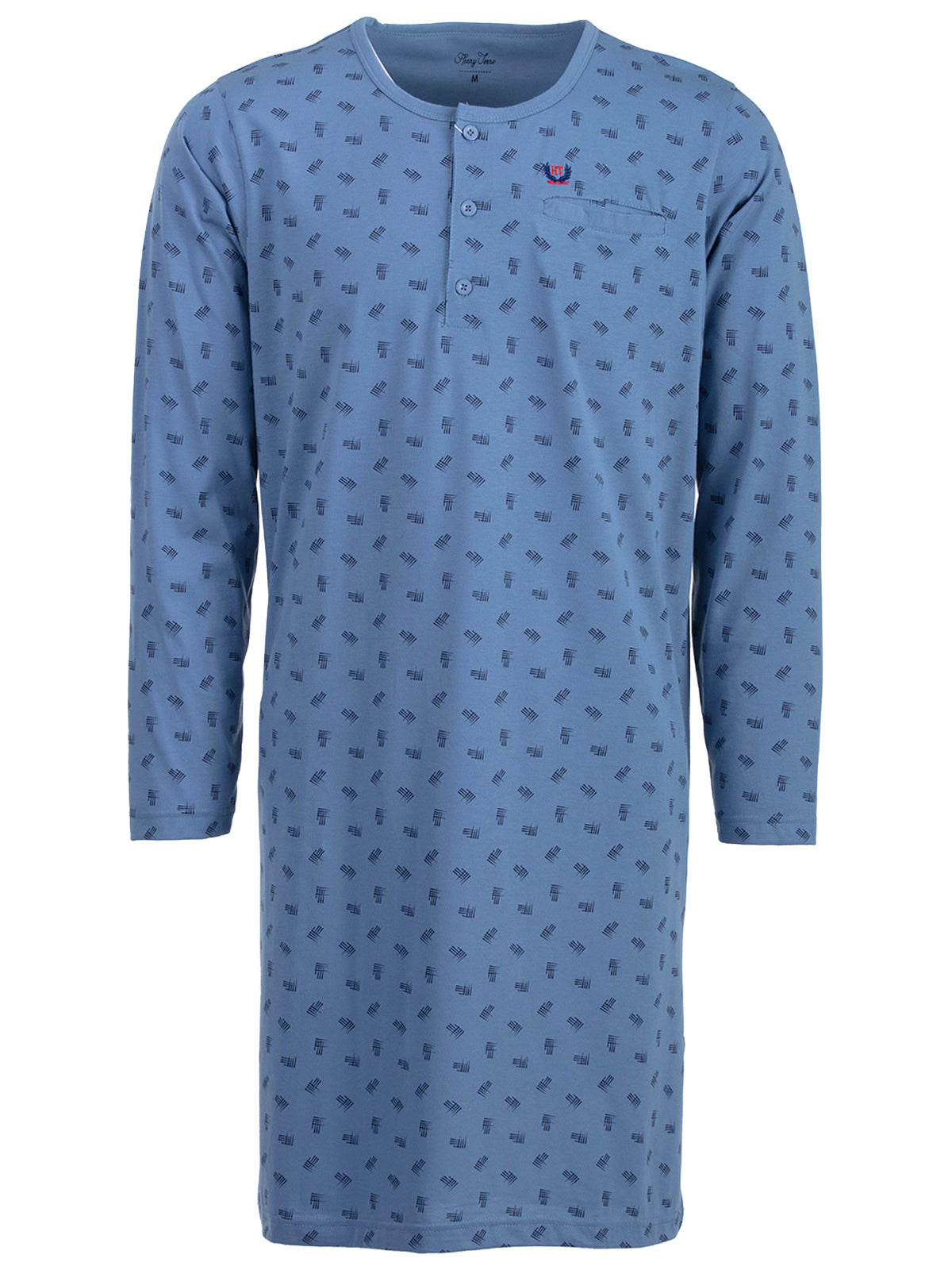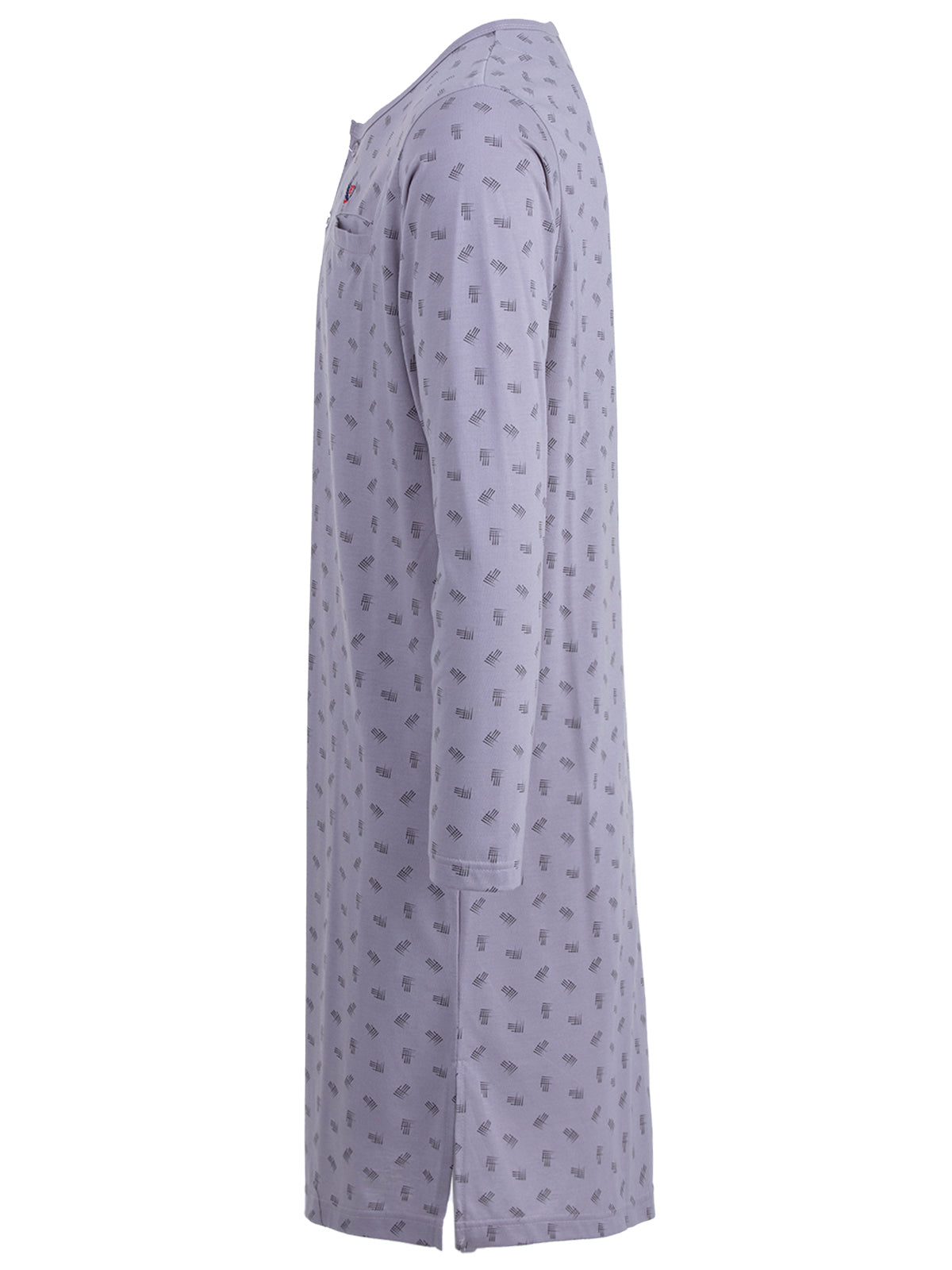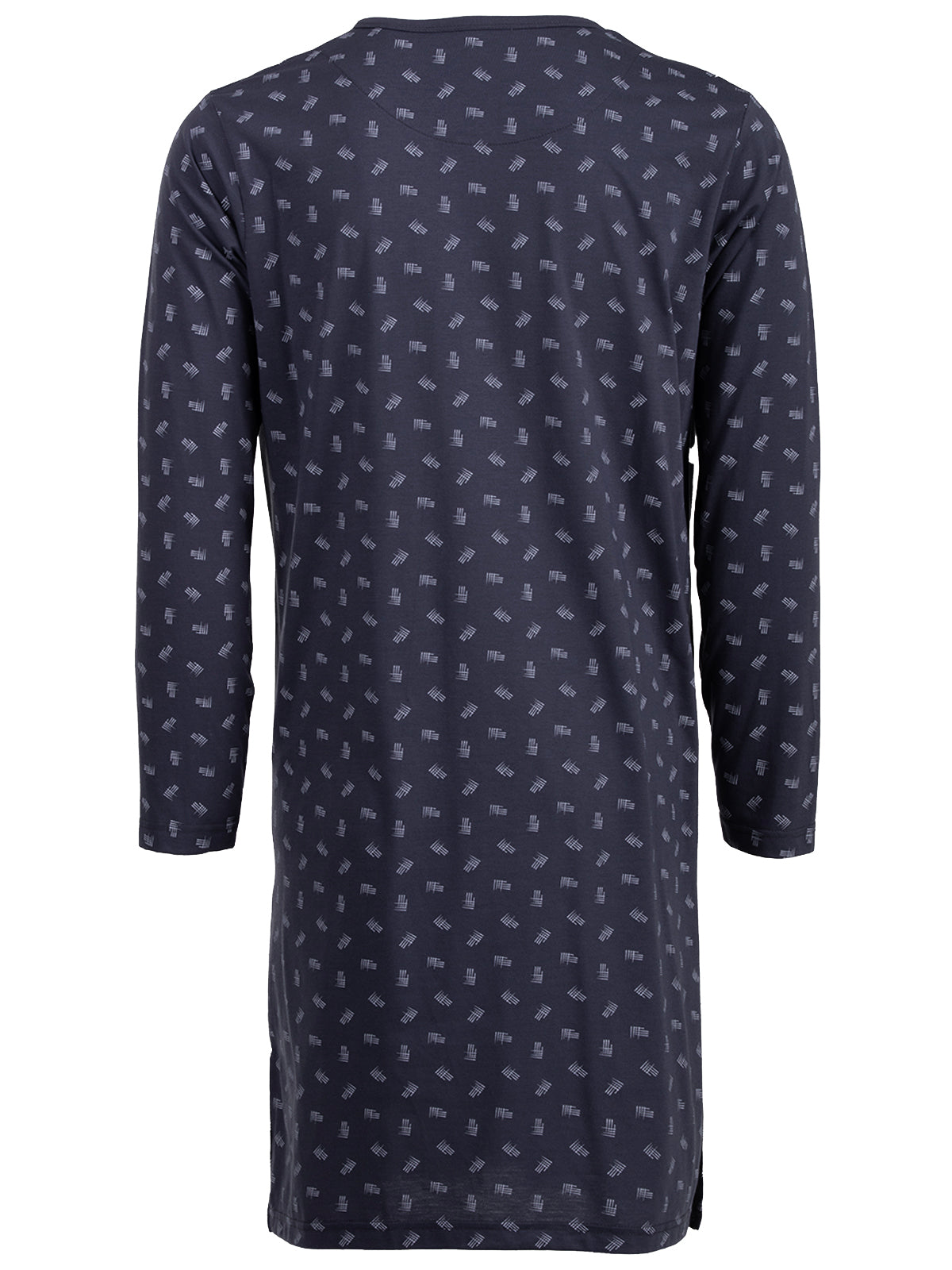 Langarm Nachthemd für Herren in moderner Optik. Das Shirt ist angenehm und leicht auf der Haut zu tragen. Dekorative Brusttasche und Knopfleiste.