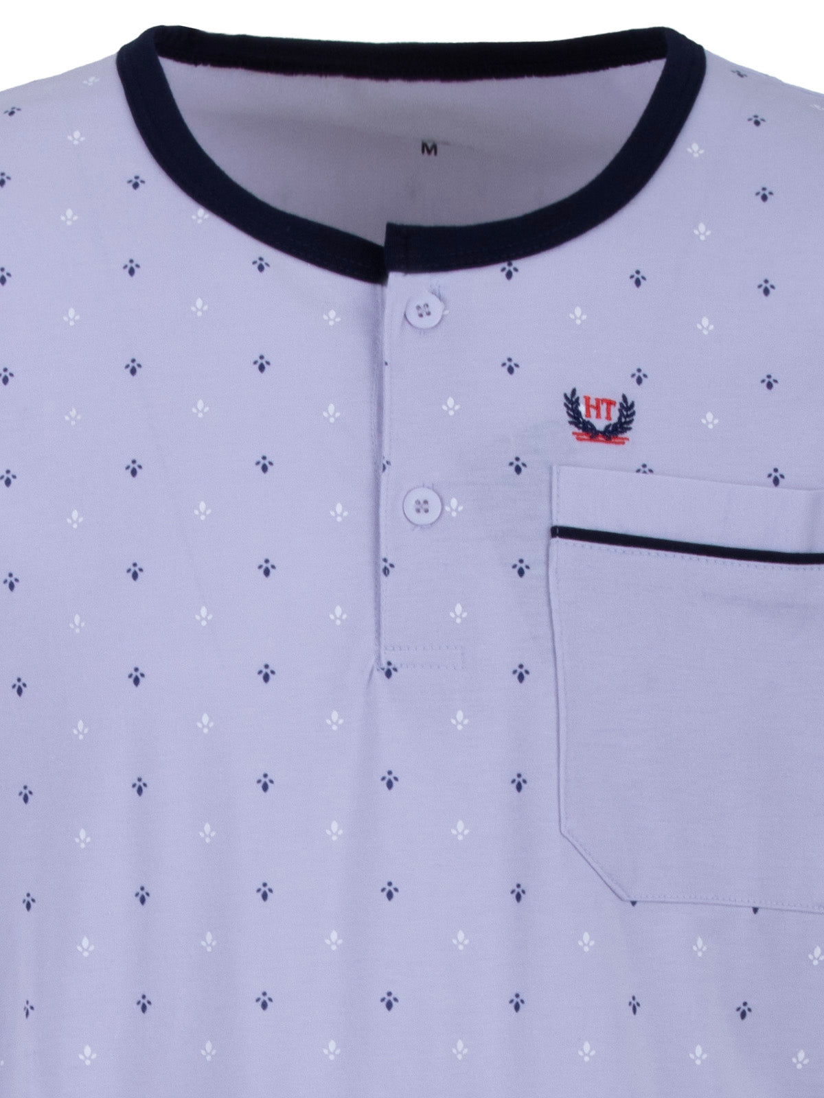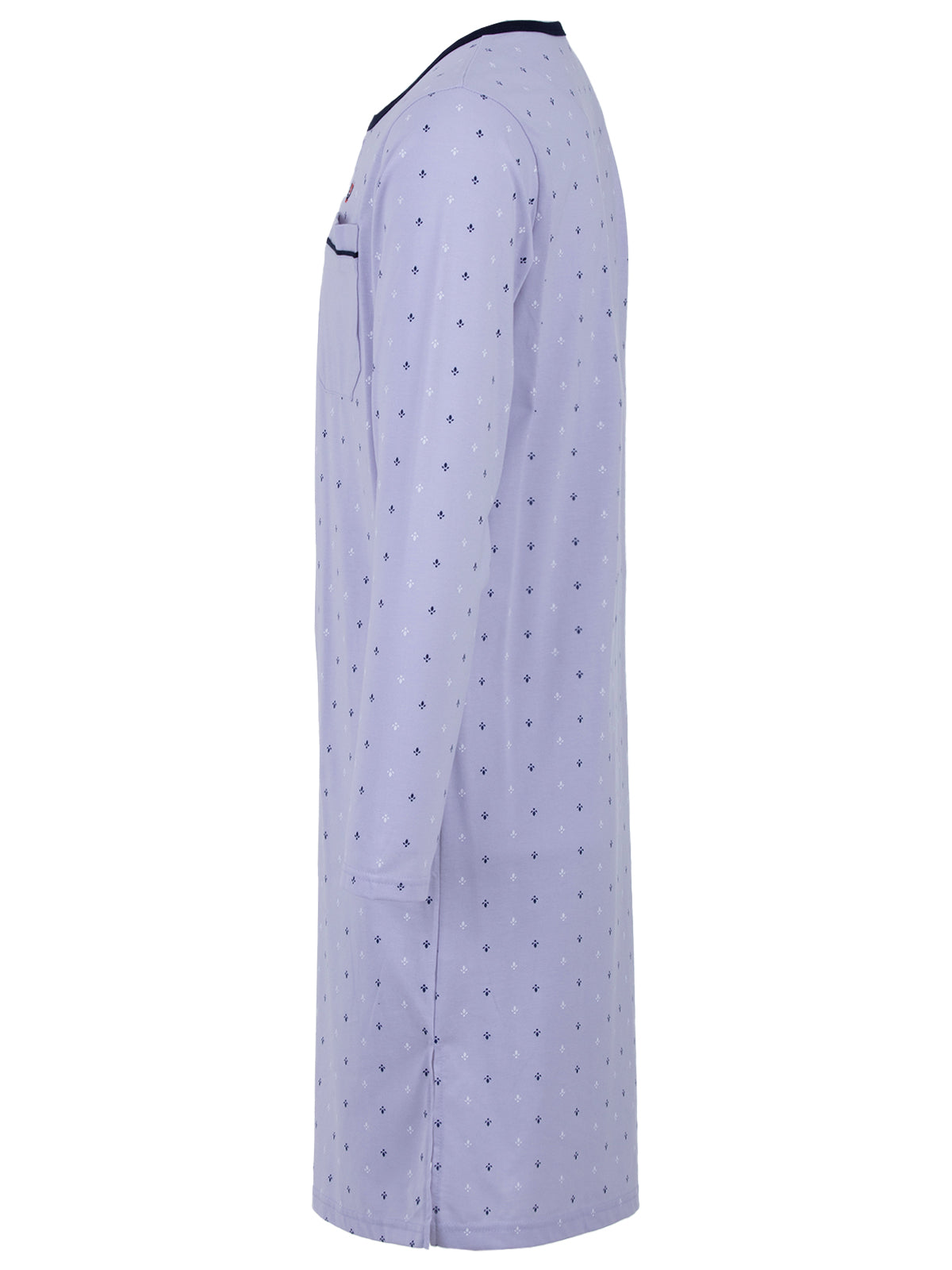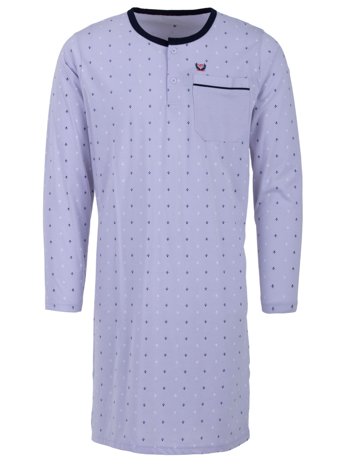 Langarm Nachthemd für Herren in moderner Optik. Das Shirt ist angenehm und leicht auf der Haut zu tragen. Dekorative Brusttasche und Knopfleiste.