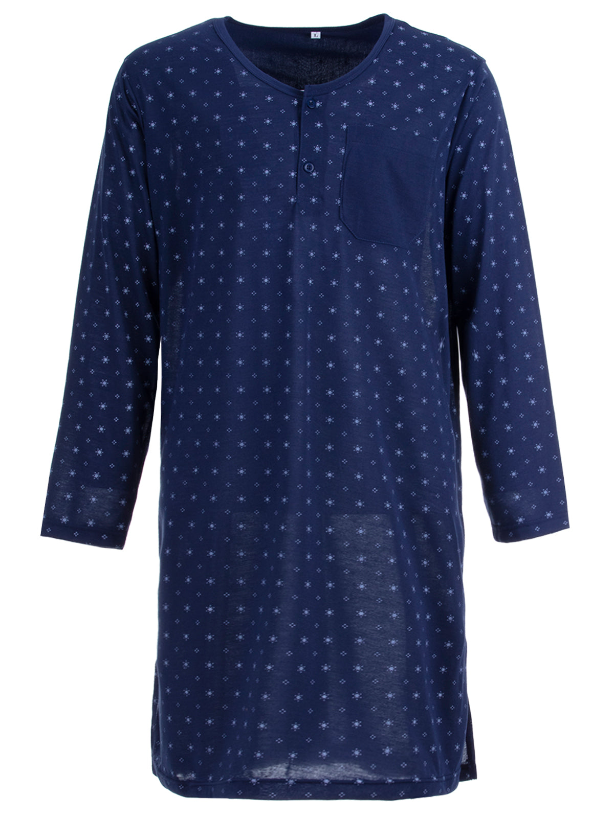 Nachthemd für Herren in klassischer Optik. Das Shirt ist angenehm und leicht auf der Haut zu tragen. Brusttasche in unifarben.