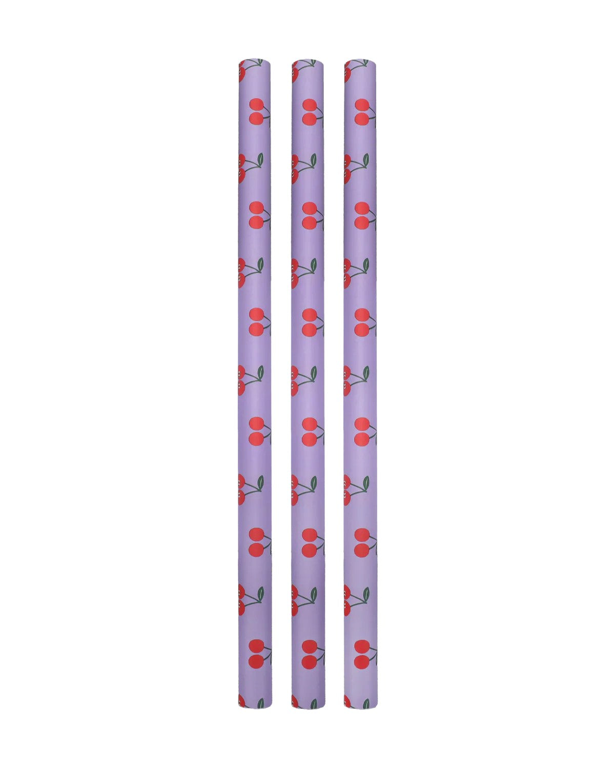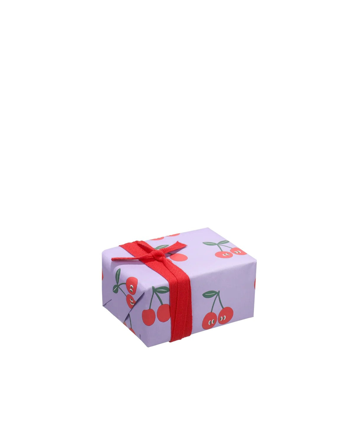 Die frechen Kirschen designed von Anne Pascal auf lavendelfarbenem Grund versüßen das Schenken ungemein.