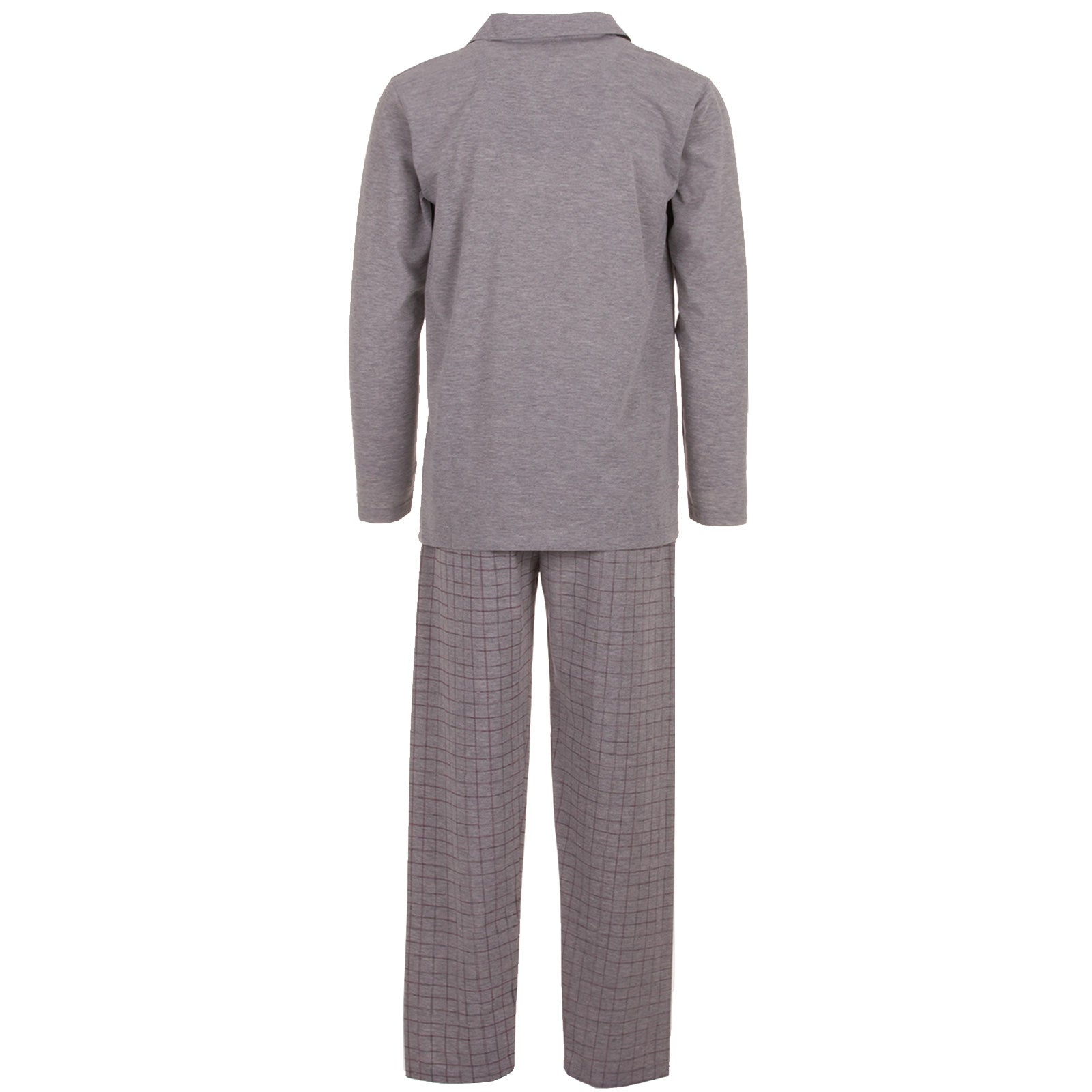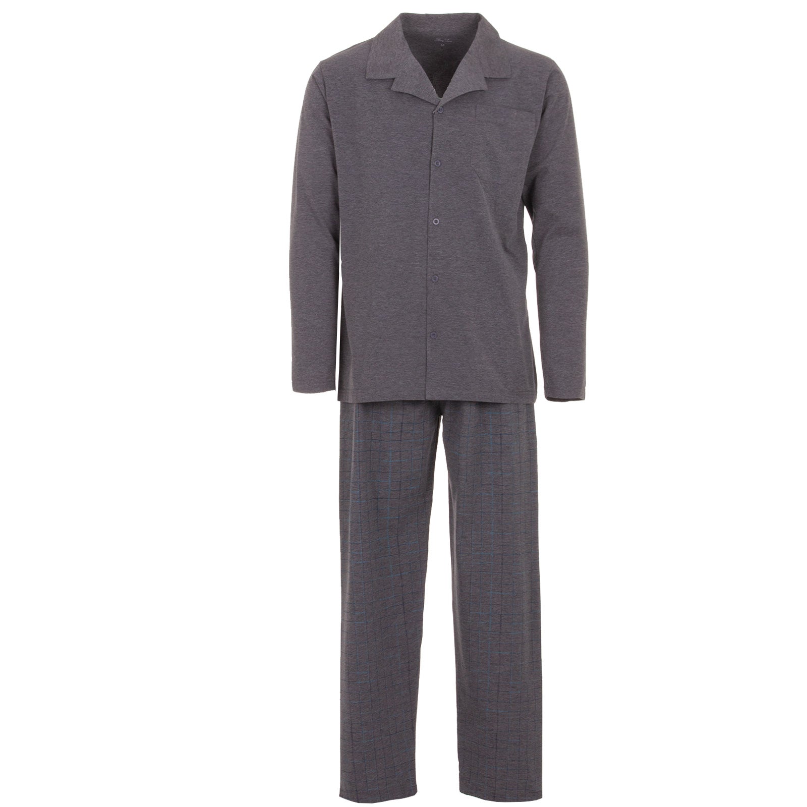 Modischer zeitloser Schlafanzug. Der Herrenschlafanzug ist angenehm auf der Haut zu tragen. Oberteil durchgeknöpft und mit Brusttasche. Die lange Schlafanzughose hat einen Dehnbund.