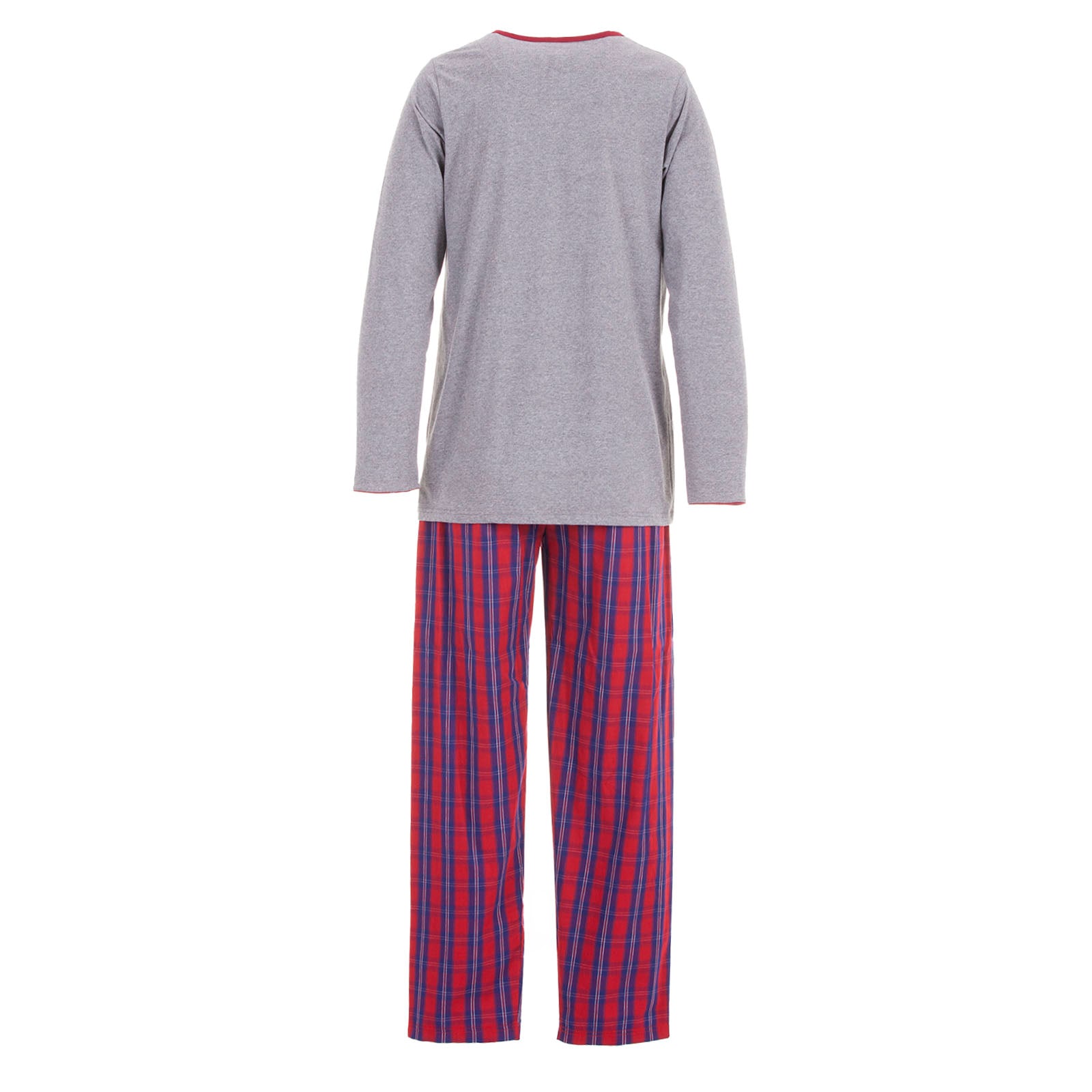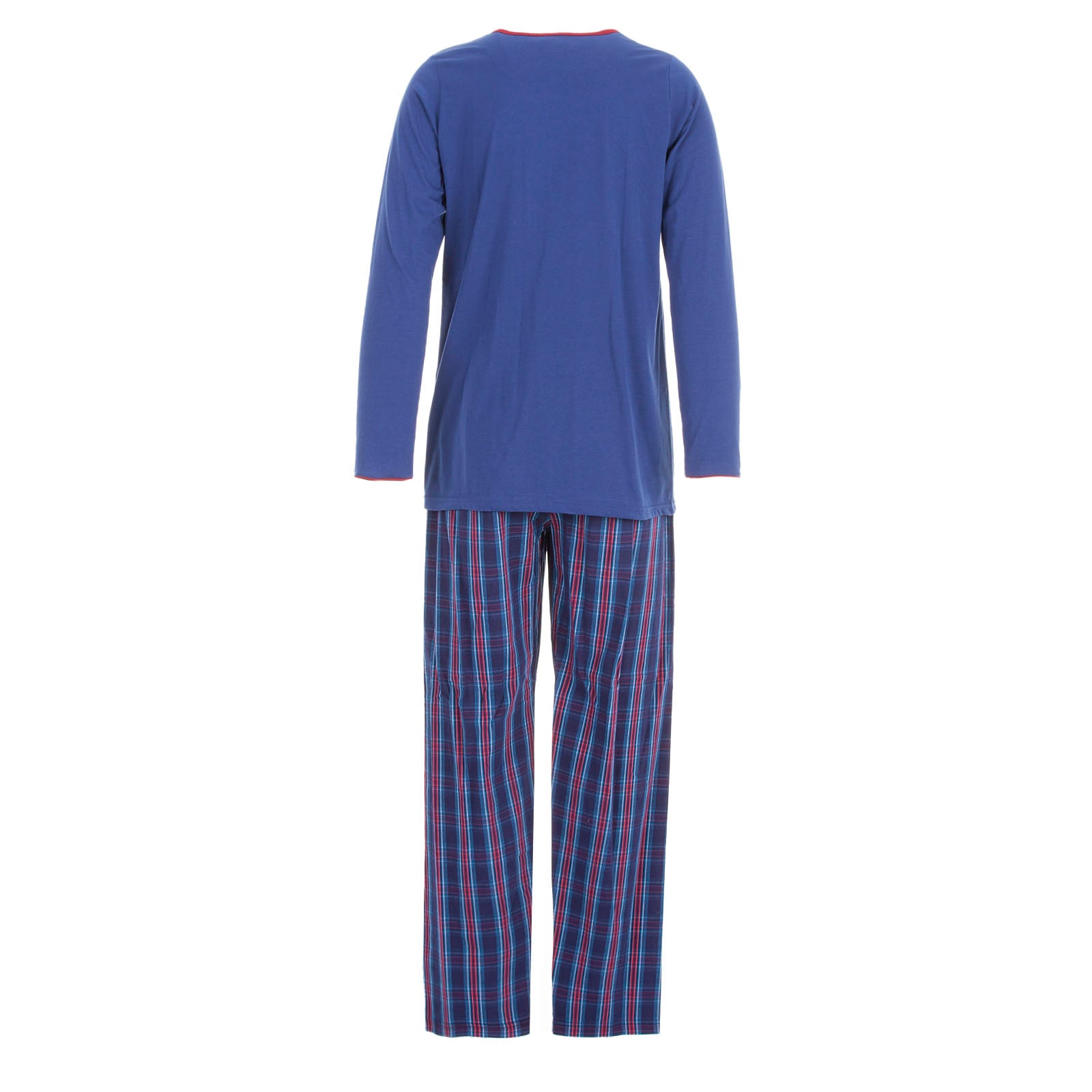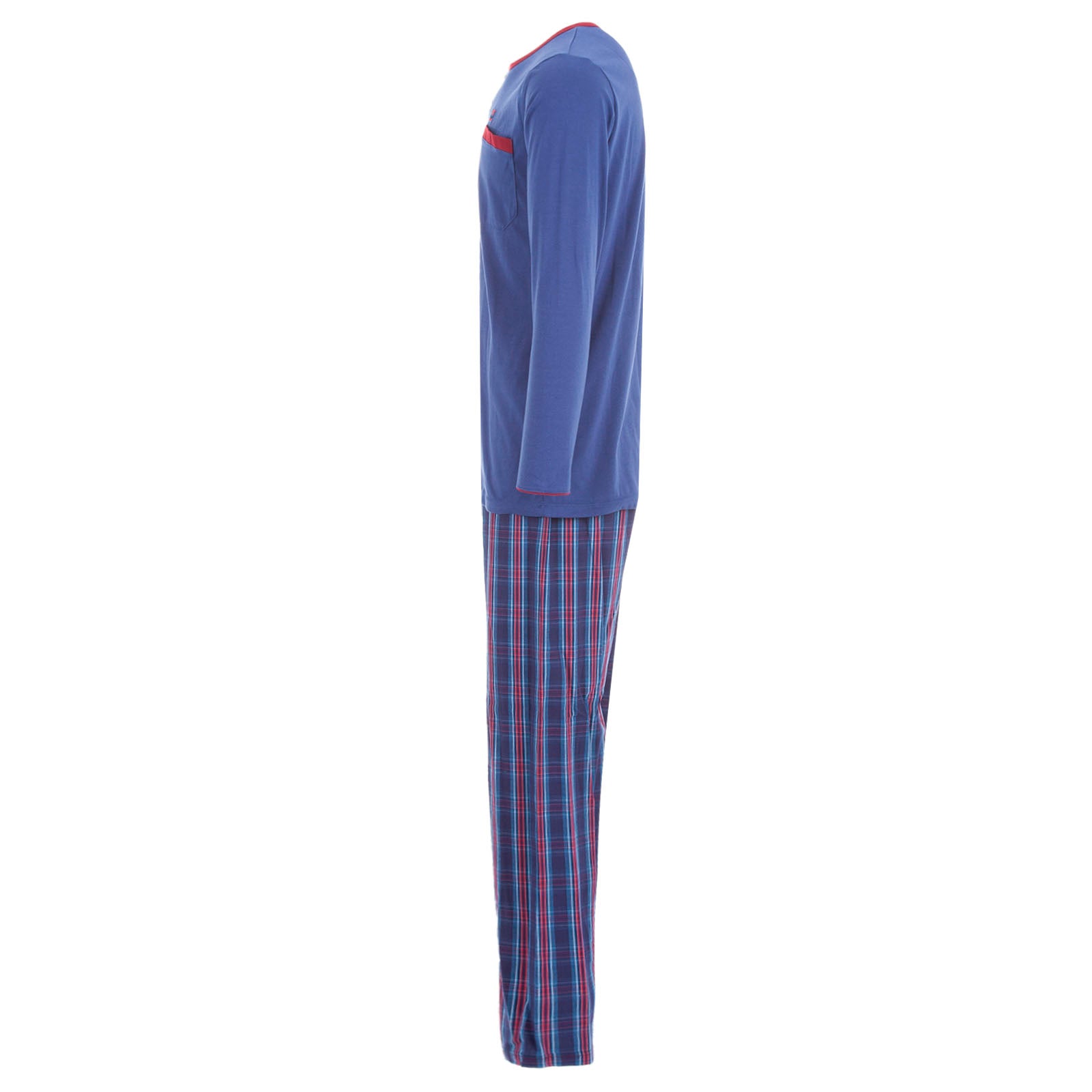 Modischer zeitloser Schlafanzug. Der Herrenschlafanzug ist angenehm auf der Haut zu tragen. Passende Brusttasche auf dem Oberteil. Die lange Schlafanzughose hat einen Dehnbund.