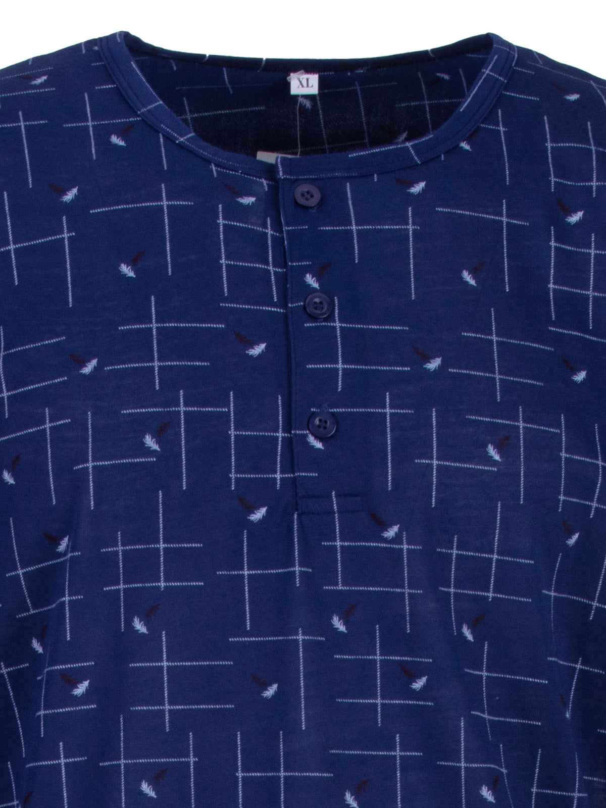 Modischer zeitloser Schlafanzug. Der Herrenschlafanzug ist angenehm auf der Haut zu tragen. Brusttasche auf dem Oberteil. Die lange Schlafanzughose hat einen Dehnbund.