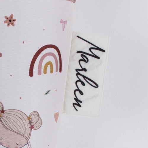 Auf einem sanft beigen Hintergrund tanzt eine fein gezeichnete Ballerina in zarten Rosatönen, umgeben von floralen Elementen, Regenbögen und filigranen Blättern. Die schlichte Farbgebung in Kombination mit detailreichen Illustrationen verleiht der Tüte eine moderne, ruhige Ästhetik, die stilvoll und kindgerecht zugleich ist. Ein schimmernder Stoffverschluss sowie lange, zierende Bänder runden das Design ab und machen die Schultüte zu einem echten Blickfang. Passend dazu ist eine Haarschleife im gleichen Farbstil enthalten – perfekt für ein harmonisches Einschulungs-Outfit. Diese hochwertige Schultüte verbindet feine Handarbeit mit nordisch inspiriertem Design und ist ein wunderschönes Andenken an einen ganz besonderen Tag im Leben kleiner Tänzerinnen.