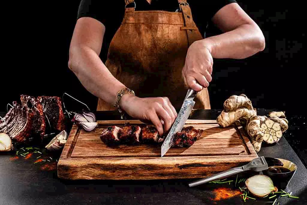 Entdecken Sie das robuste Schneidebrett mit praktischer Saftrinne von Forged aus der neuen Essentials-Serie. Hergestellt aus strapazierfähigem und hochwertigem Akazienholz und ausgestattet mit rutschfesten Füßen für zusätzliche Stabilität. Das Schneidebrett ist in zwei Größen (M und L) erhältlich. Mit dem Forged-Pflegeset bleibt es in Top-Zustand. Unverzichtbar für jeden kulinarischen Kämpfer.