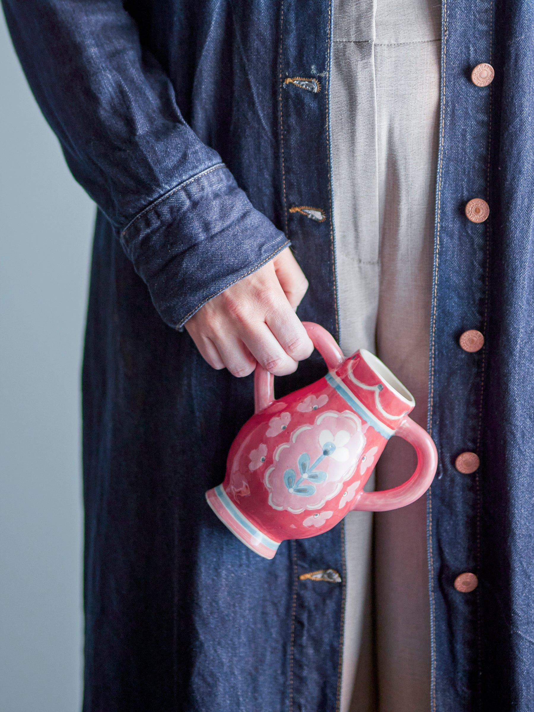Die Odina Vase von Bloomingville ist mit einer tiefroten Farbe und einem feinen, handbemalten Blumenmotiv in Blau-, Rosa- und Weißtönen verziert. Die Vase dient als dekoratives Element für das Zuhause, ob allein stehend oder mit Blumen darin. Die handbemalte Natur macht jede Vase einzigartig.