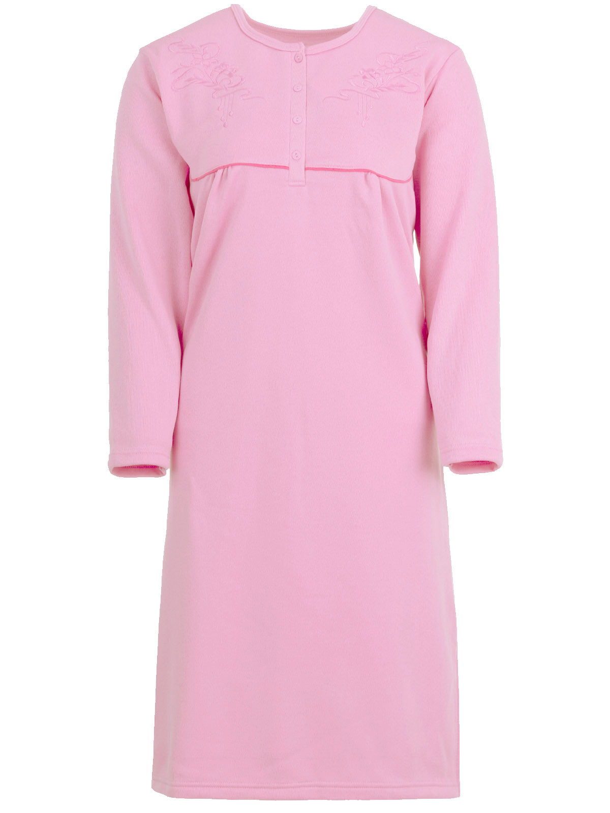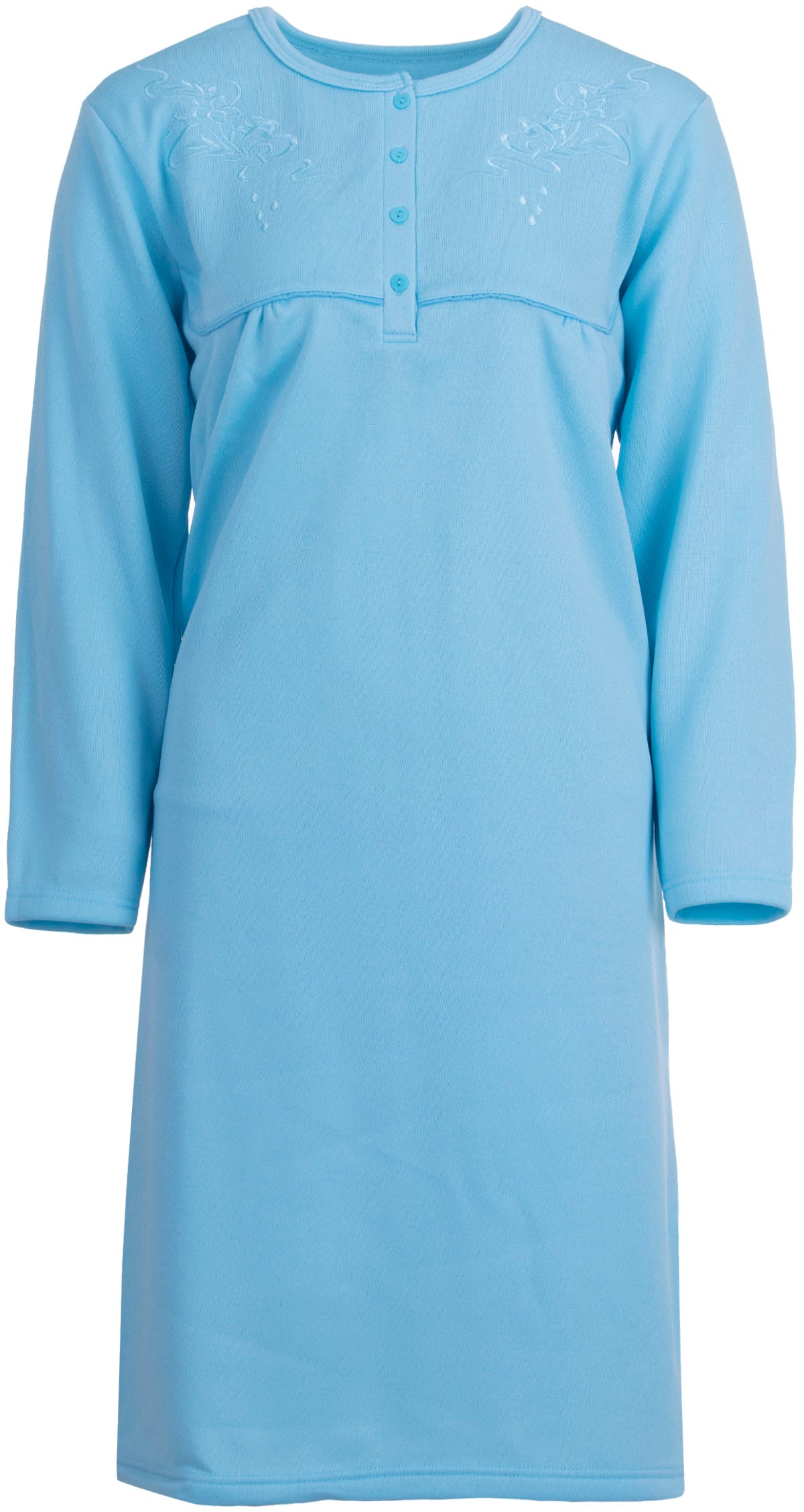 Das Nachthemd ist von innen angeraut wodurch es sehr weich und kuschelig ist, also ideal für die kühlere Jahreszeit. Die vier Knöpfe am Rundhalsauschnitt sorgen für einen komfortables an- und ausziehen.