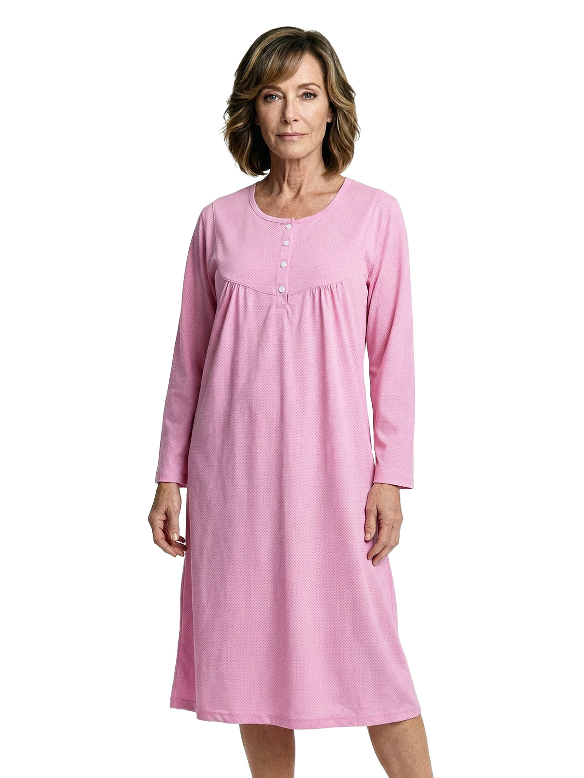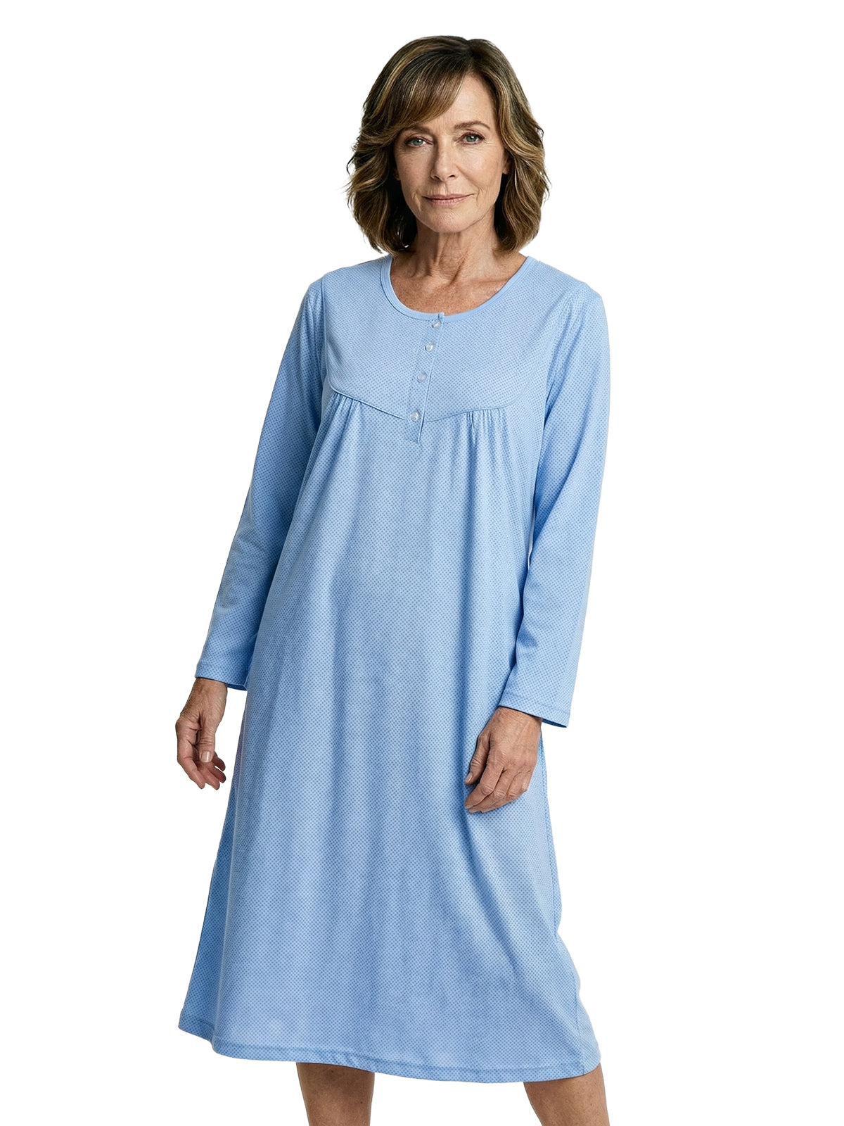 With long sleeves and a small gather, it combines classic elements with a modern design. The small button placket allows for easy dressing and gives the nightgown an extra touch of sophistication.