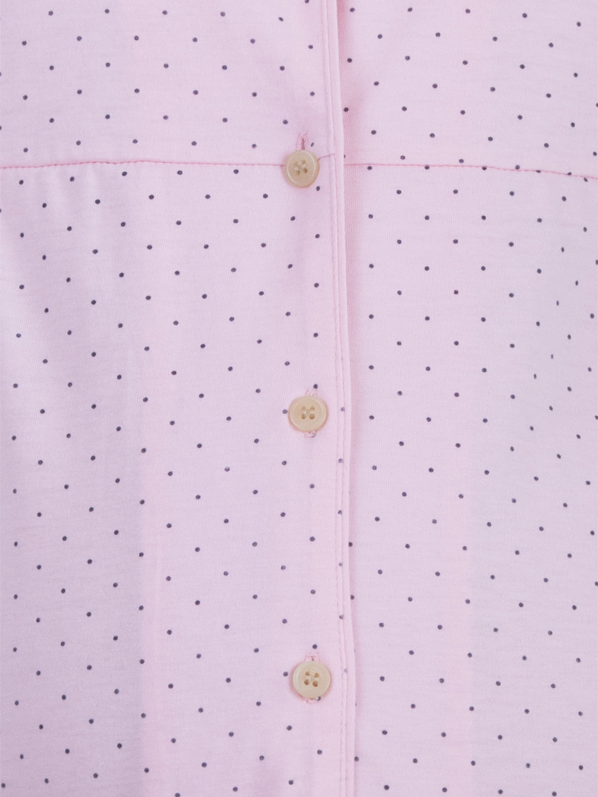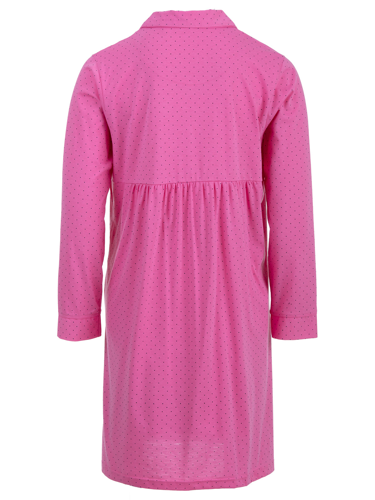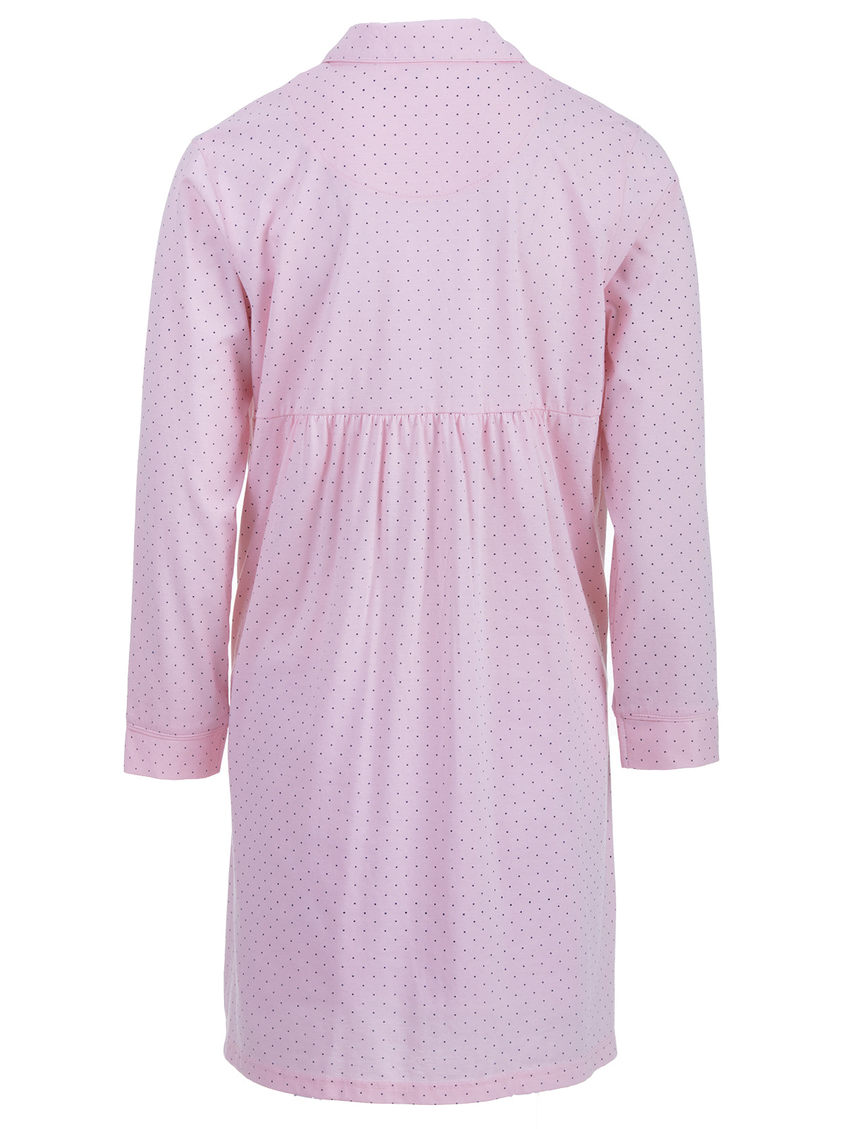 This stylish nightgown with small polka dots is the perfect companion for expectant and new moms. The comfortable design combines functionality with a modern look—ideal for pregnancy, hospital stays, and breastfeeding. It's available in pink, mint, or fuchsia.