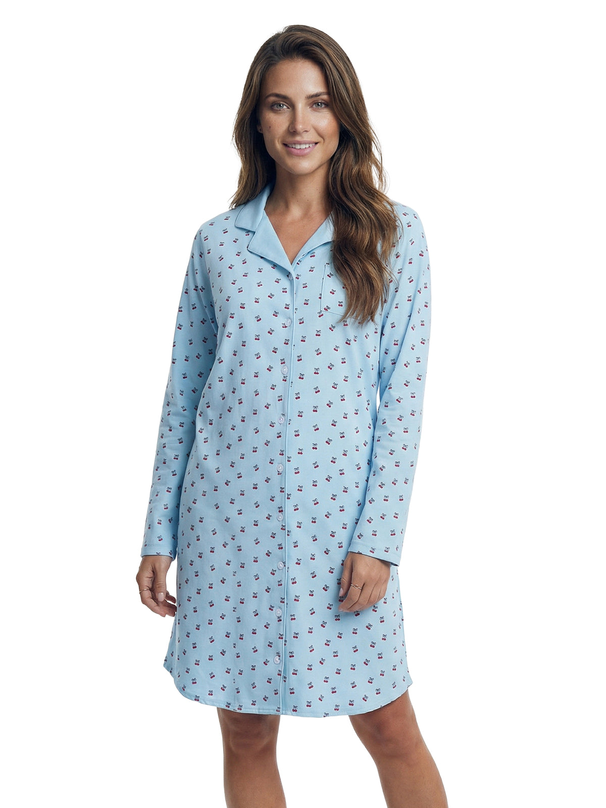 With long sleeves and an elegant collar, it combines classic elements with a modern design. The full-length button placket allows for easy dressing and gives the nightgown an extra touch of sophistication.