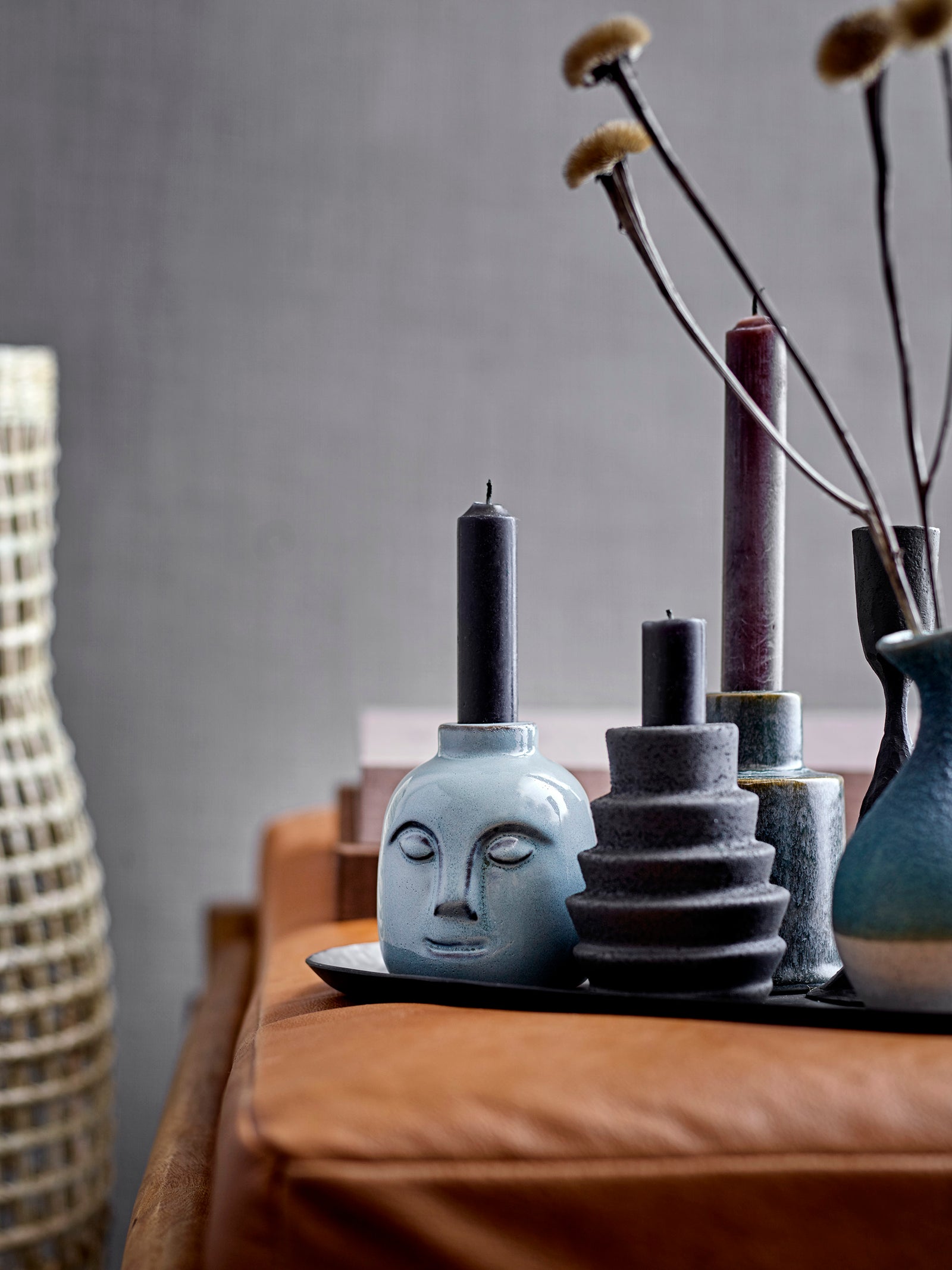 Black stoneware candle holder to style in a group with other home accessories for the perfect and modern look.