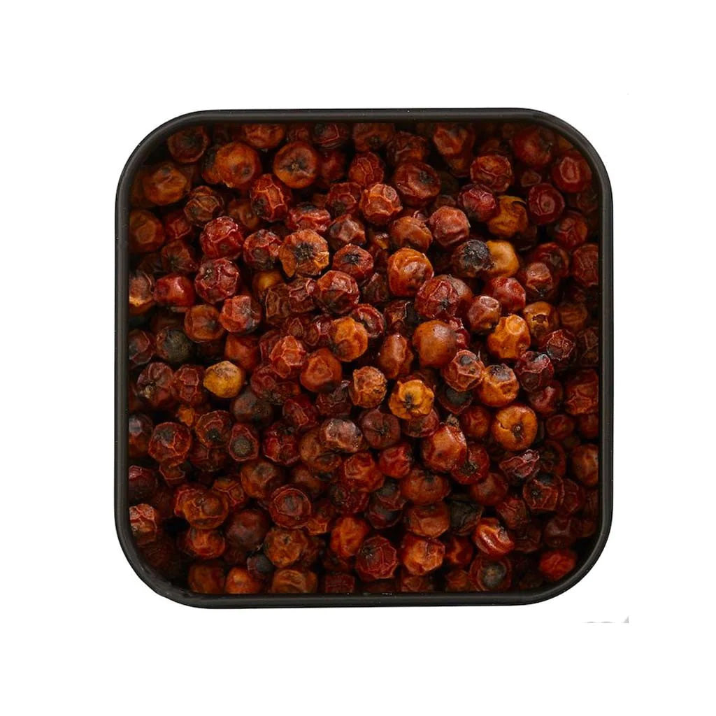 Alle ätherischen Öle in den roten, reifen Beeren sind voll entwickelt und Sie erhalten einfach eine Fülle von Geschmack. Natürlich die ausgeprägte, verlockende Schärfe des Pfeffers, aber auch ein süßes Aroma und ein klarer, fruchtiger Geschmack, der für diese rote Pfefferbeere völlig einzigartig ist.